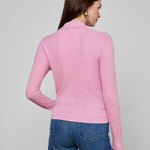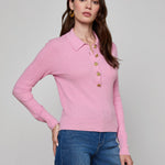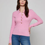 The L’AGENCE essential long sleeve knit and one of our fashion director’s favorite closet heroes. This classic henley top is now back in pink with floral buttons.