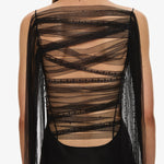 • Soft draped back with layered sheer lace