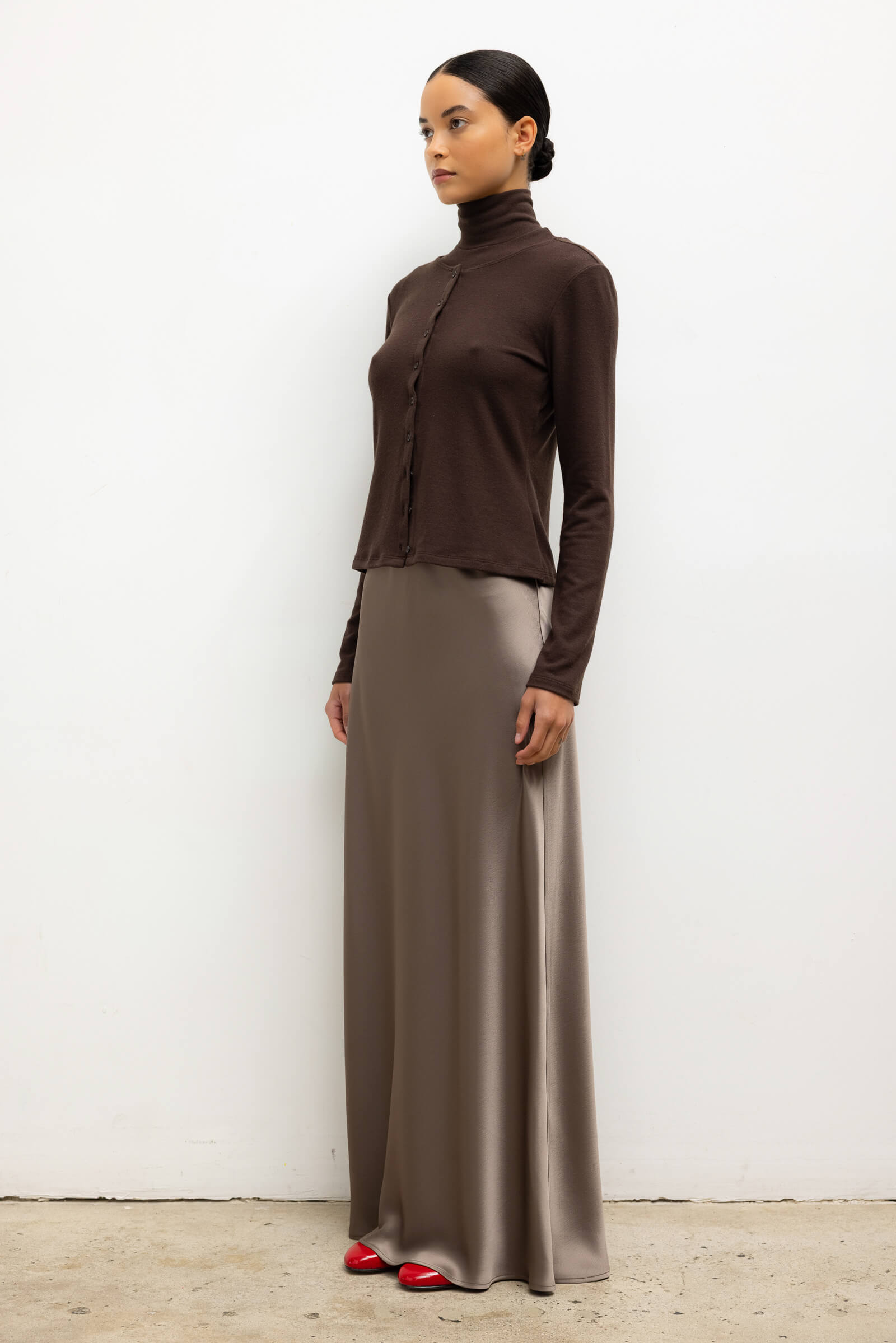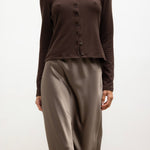 Cut in our buttery soft brushed Lauren sweater jersey, The Lauren Classic Cardigan is the full length sister to our bestselling Lauren Crop Cardigan II. This wardrobe staple features a tonal button front closure and fitted long sleeves.