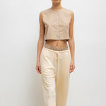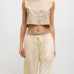 Cut in our buttery soft brushed Lauren Sweater Jersey, The Lauren Crop Drawstring Pant features a cropped, roomy leg silhouette with a soft, adjustable drawstring waist. Complete this cozy set with the Lauren Crop Cardigan II and Lauren Crop Slim Fit Tee in matching Vanilla.