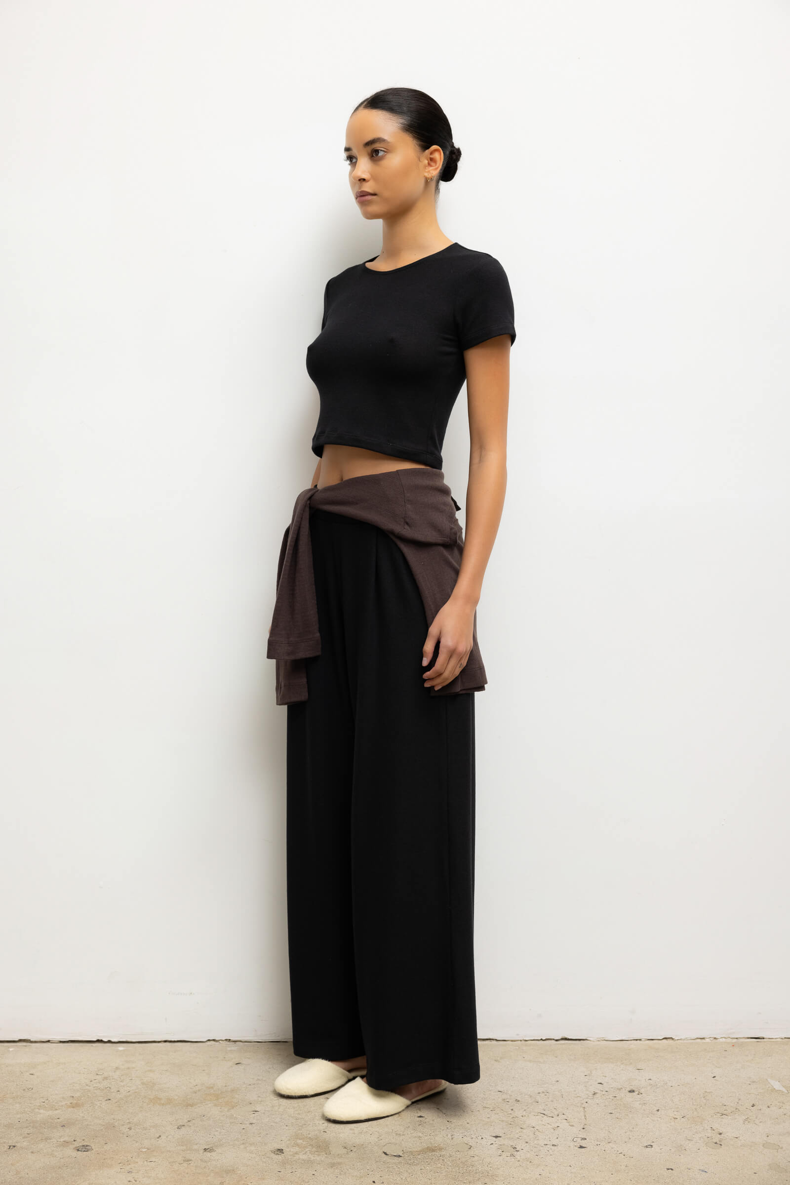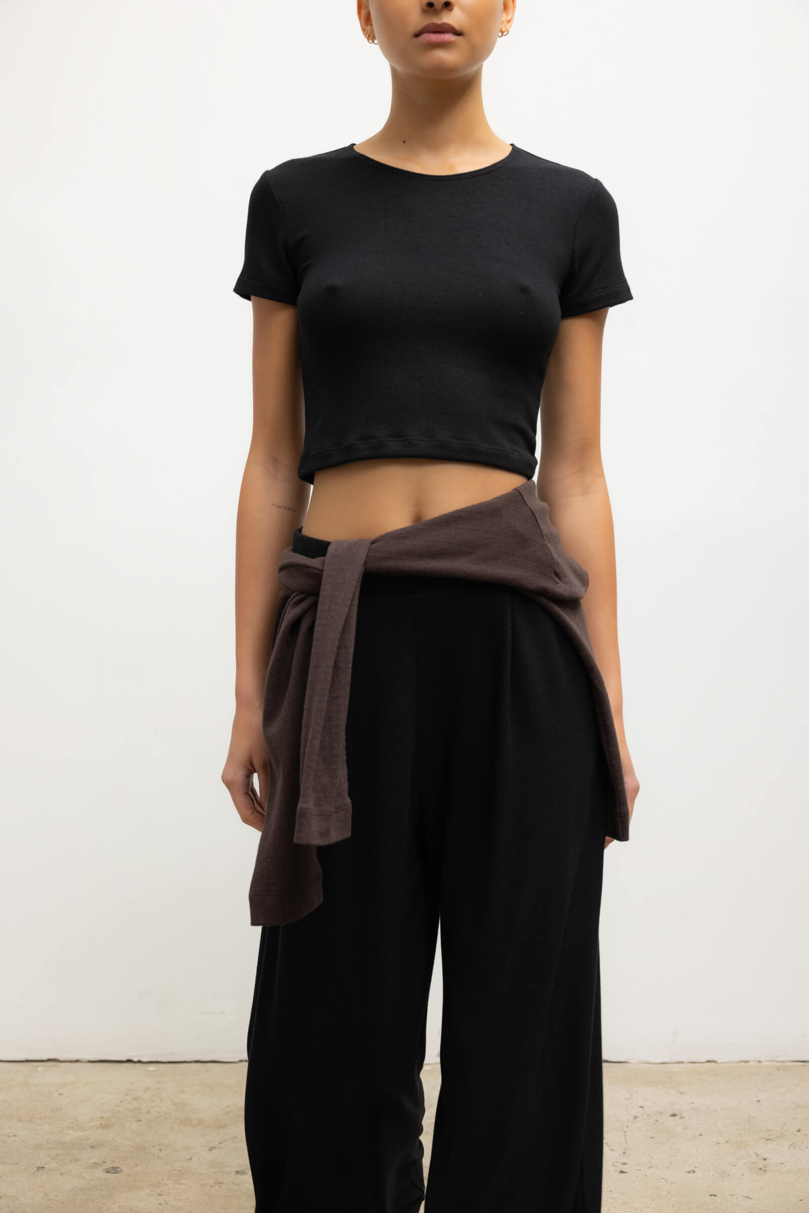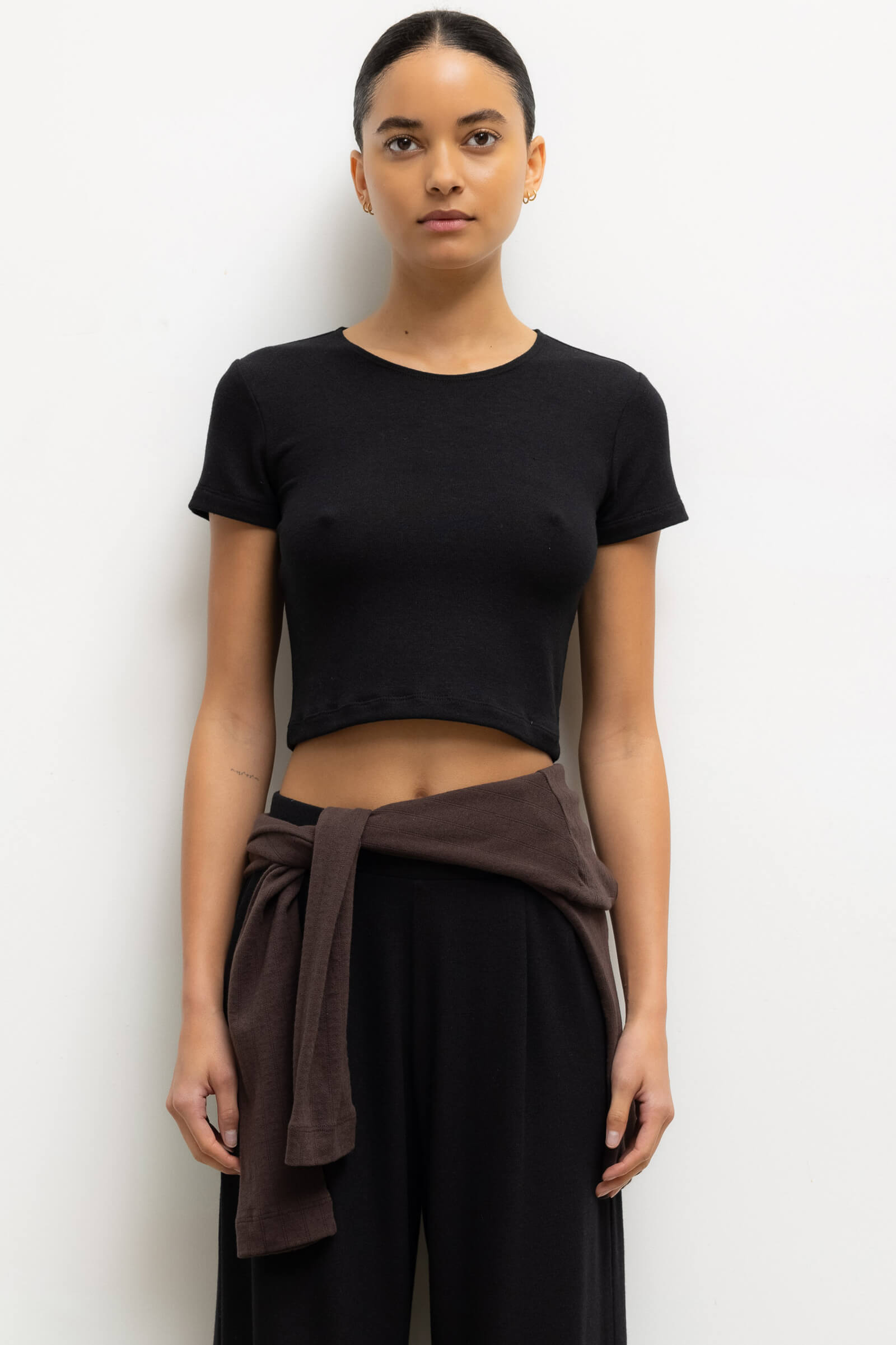Cut in our buttery soft Lauren Sweater Jersey, the Lauren Crop Slim Fit Tee is a classic crewneck t-shirt cropped at just the right length. Make it a matching set with the Lauren Crop Drawstring Pant.