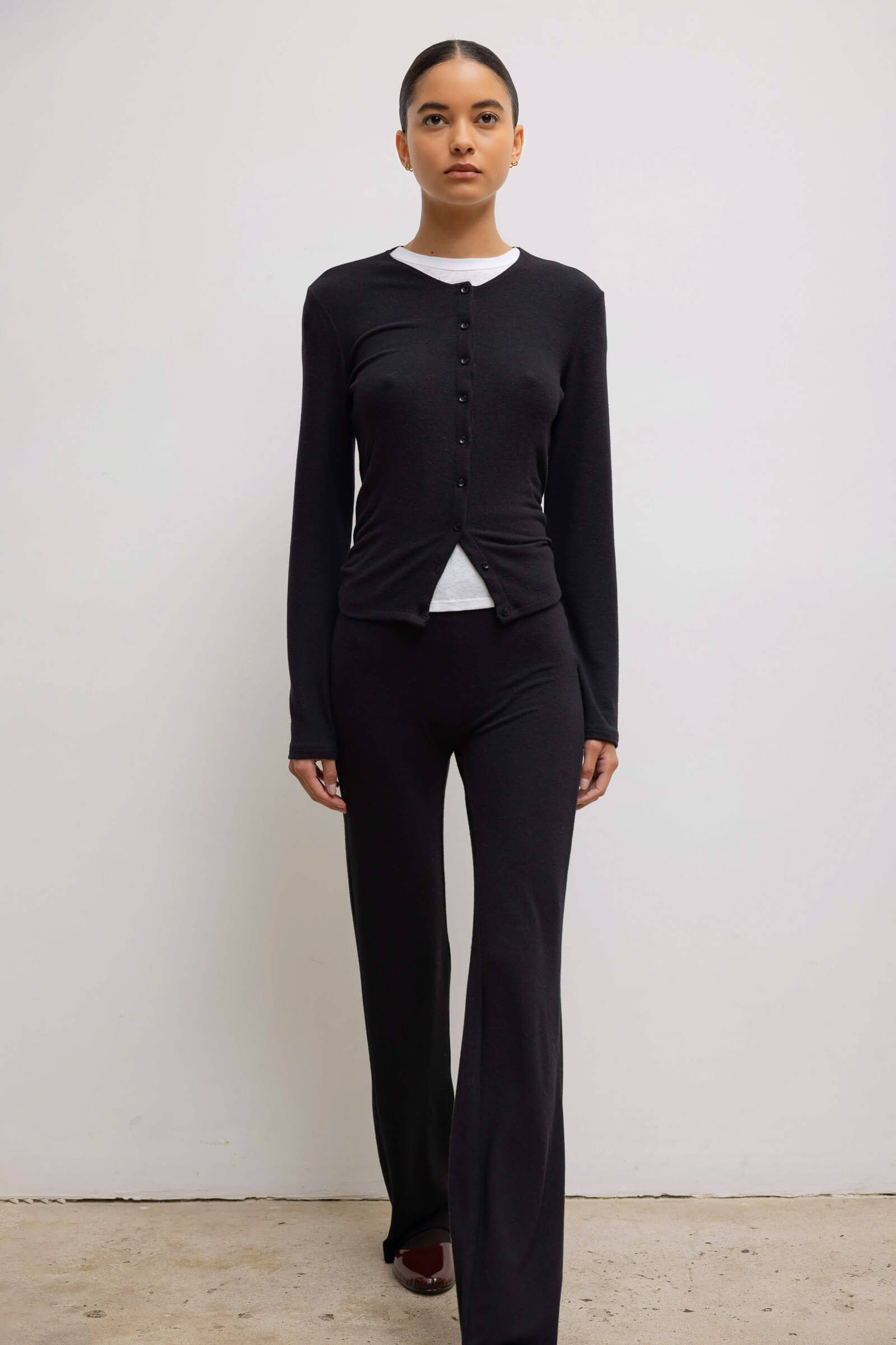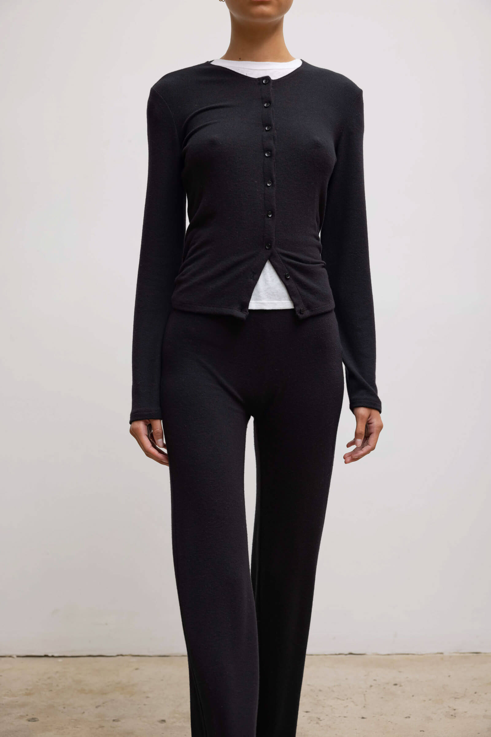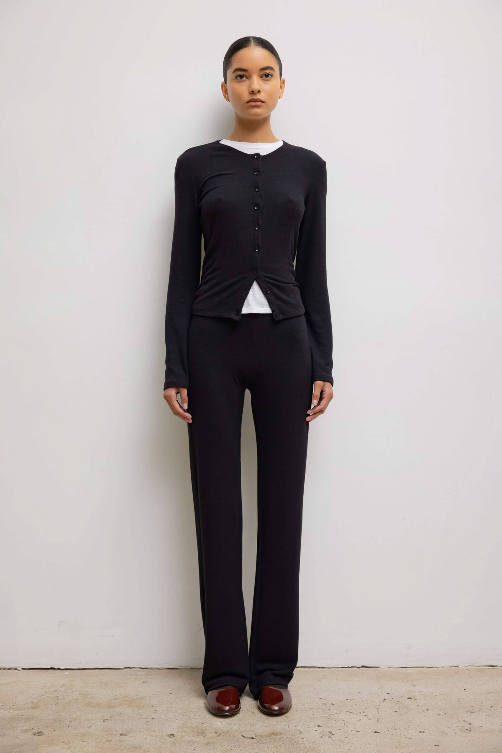 Cut in our buttery soft brushed sweater jersey, The Lauren High Waist Straight Pant is a pull on style pant that features a slim fit leg and a high waist that can be worn up or folded down.