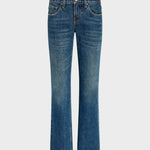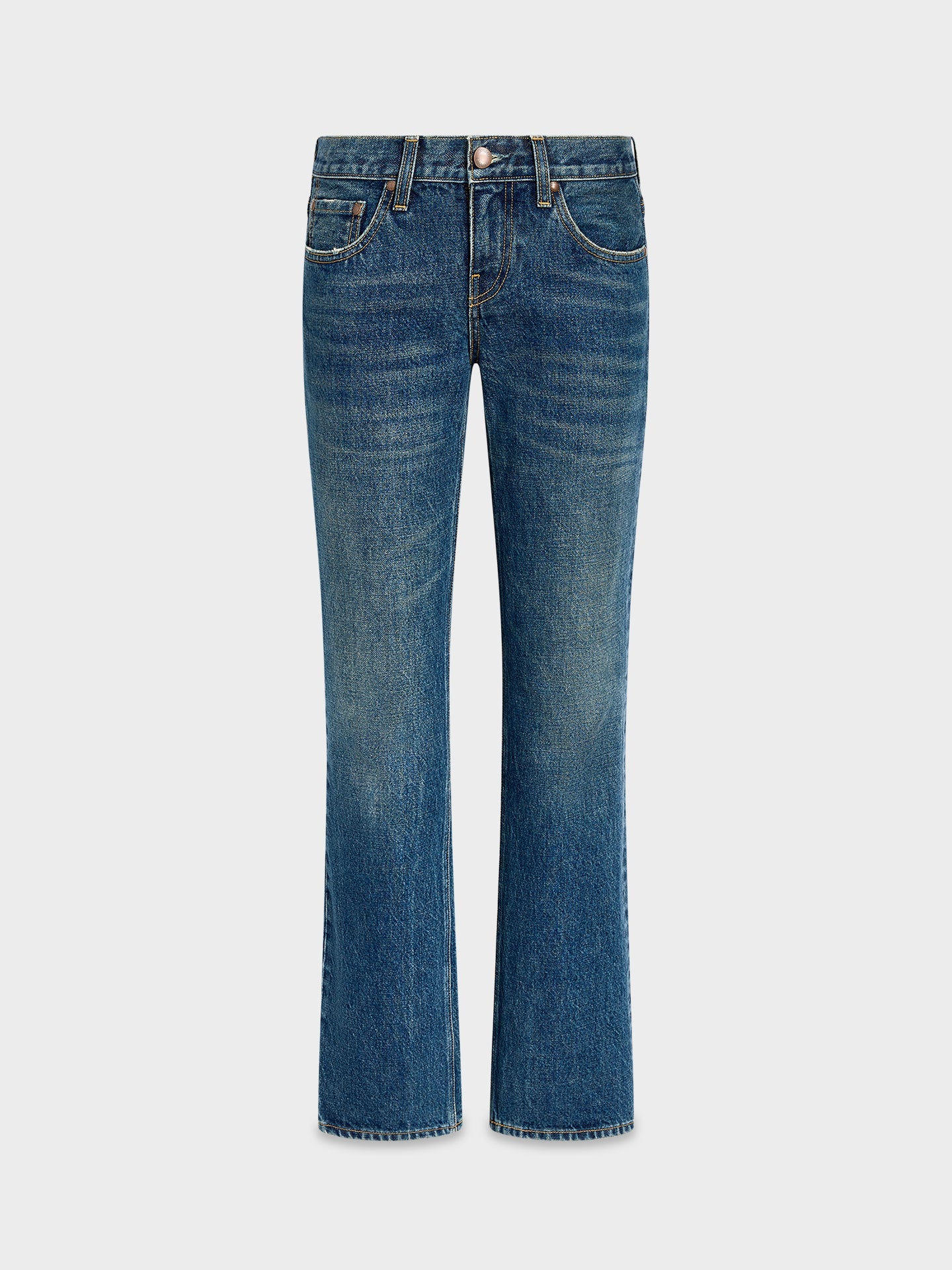 The Leary Jean is low-waisted with a perfectly flared leg and zipper fly closure. Cut in thick rigid denim, this is a tight-fitting jean crafted to lift the butt and elongate the legs all at once.