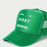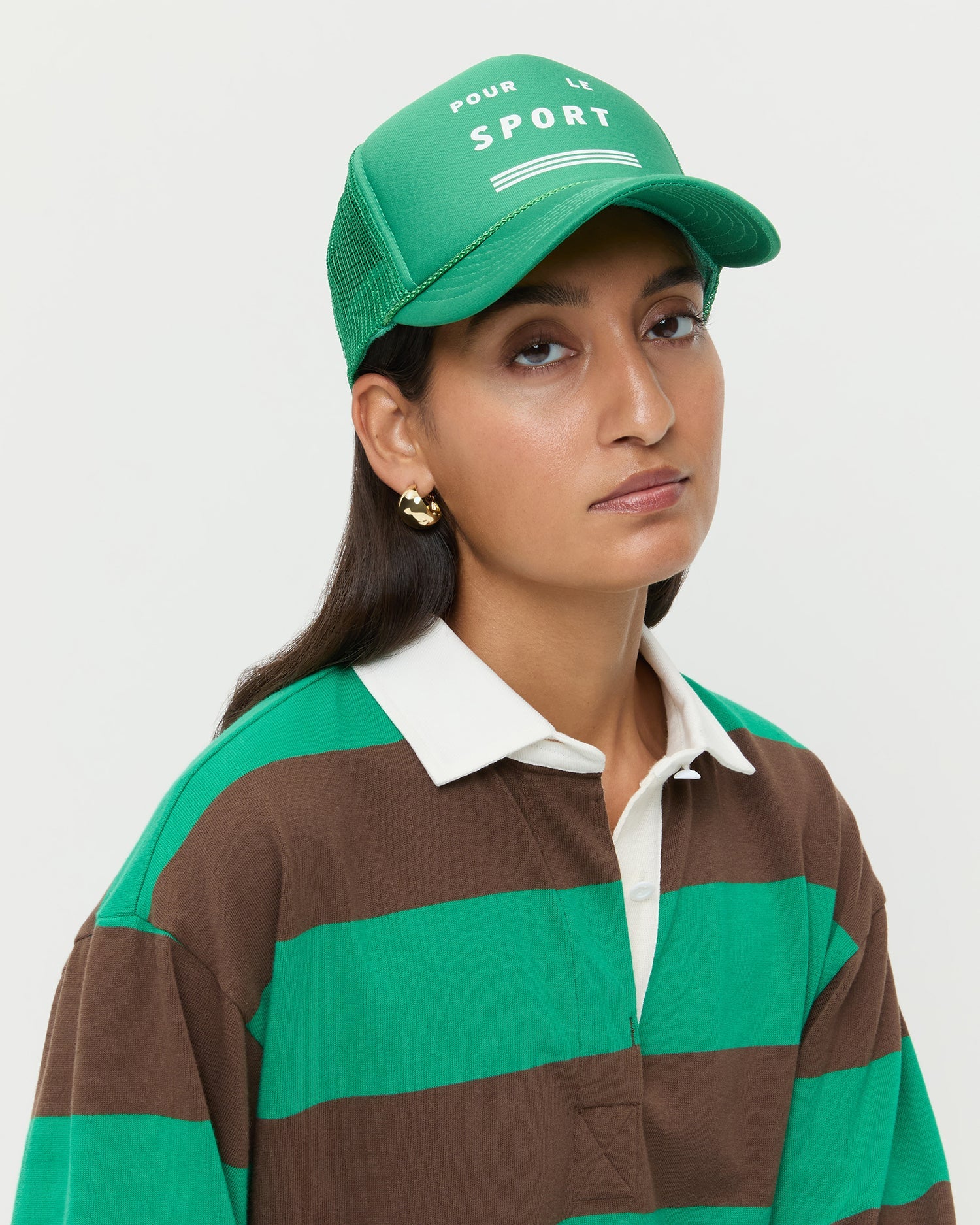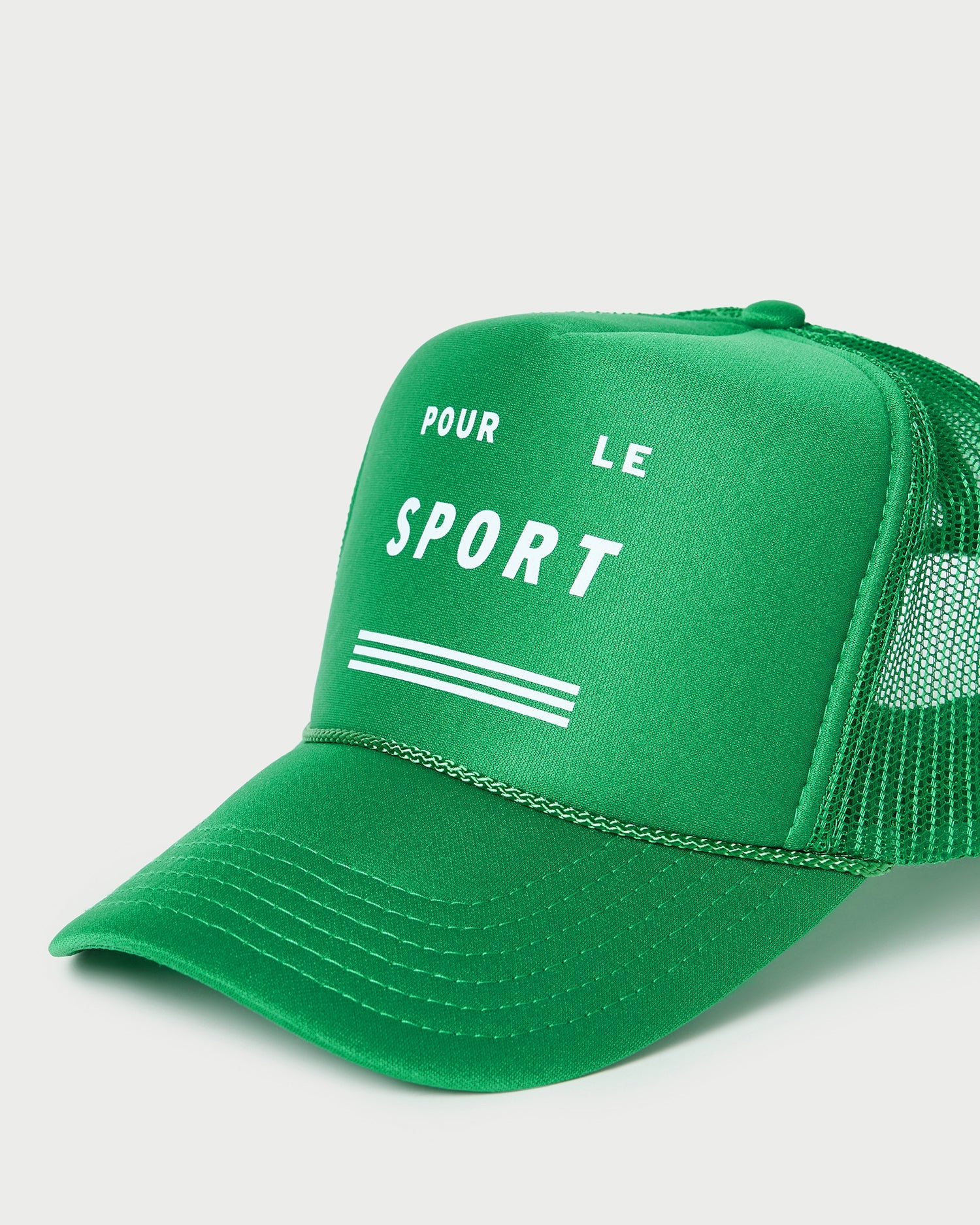 Trucker cap in green. Features a front logo patch with our exclusive LR Sport branding and an adjustable snapback closure.