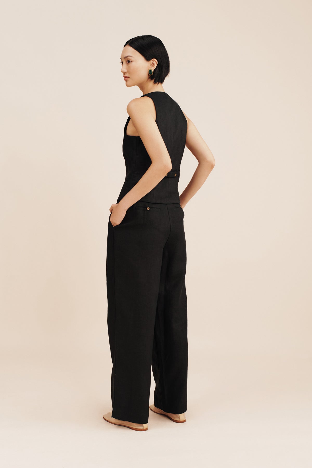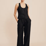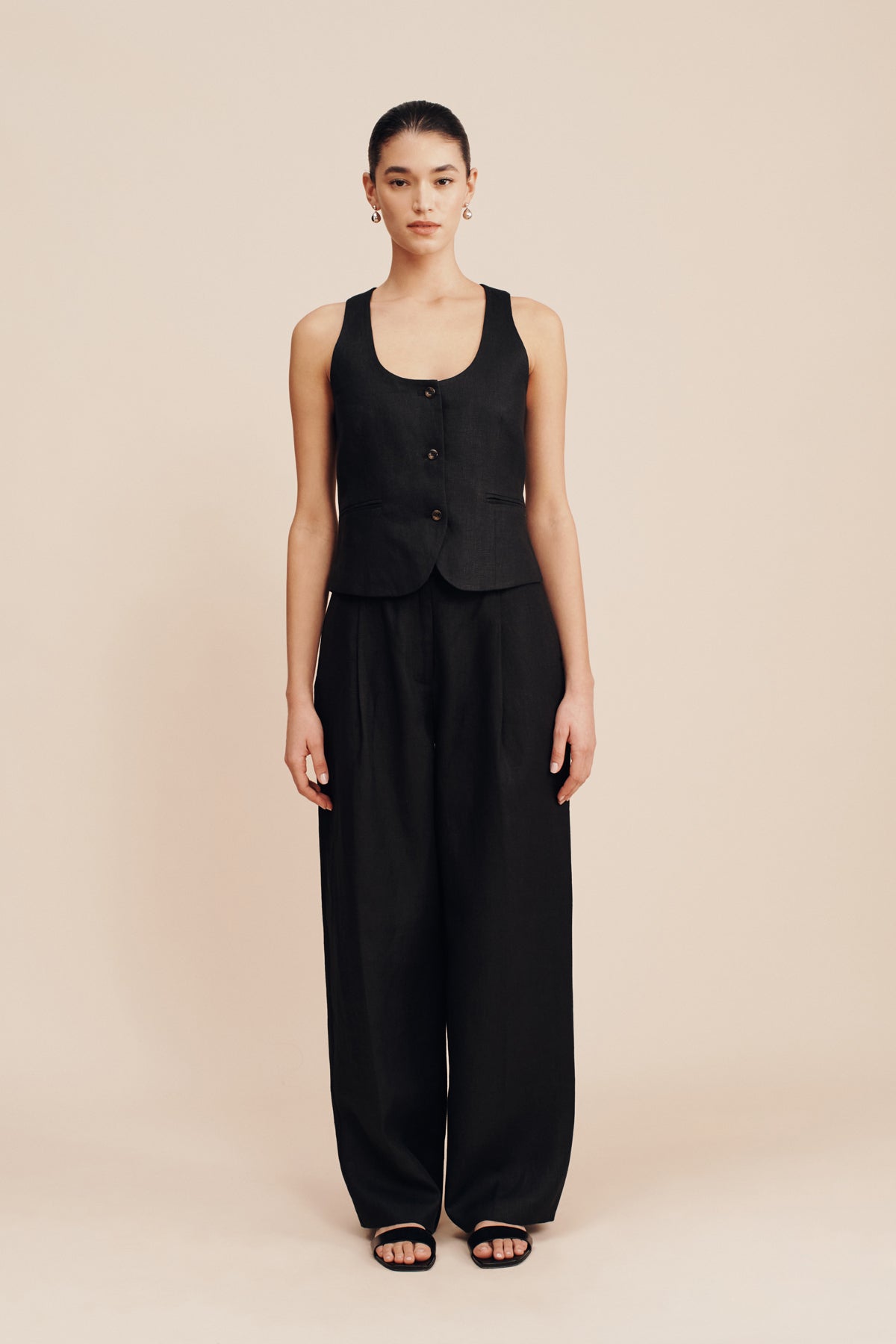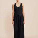 The Leon Trousers are cut from airy, certified linen and are designed with a flattering, high-rise waist. They feature roomy, wide legs and front pleats to create volume. Wear yours as a set with the matching Ruben Vest or pair them with a simple tank and slides.