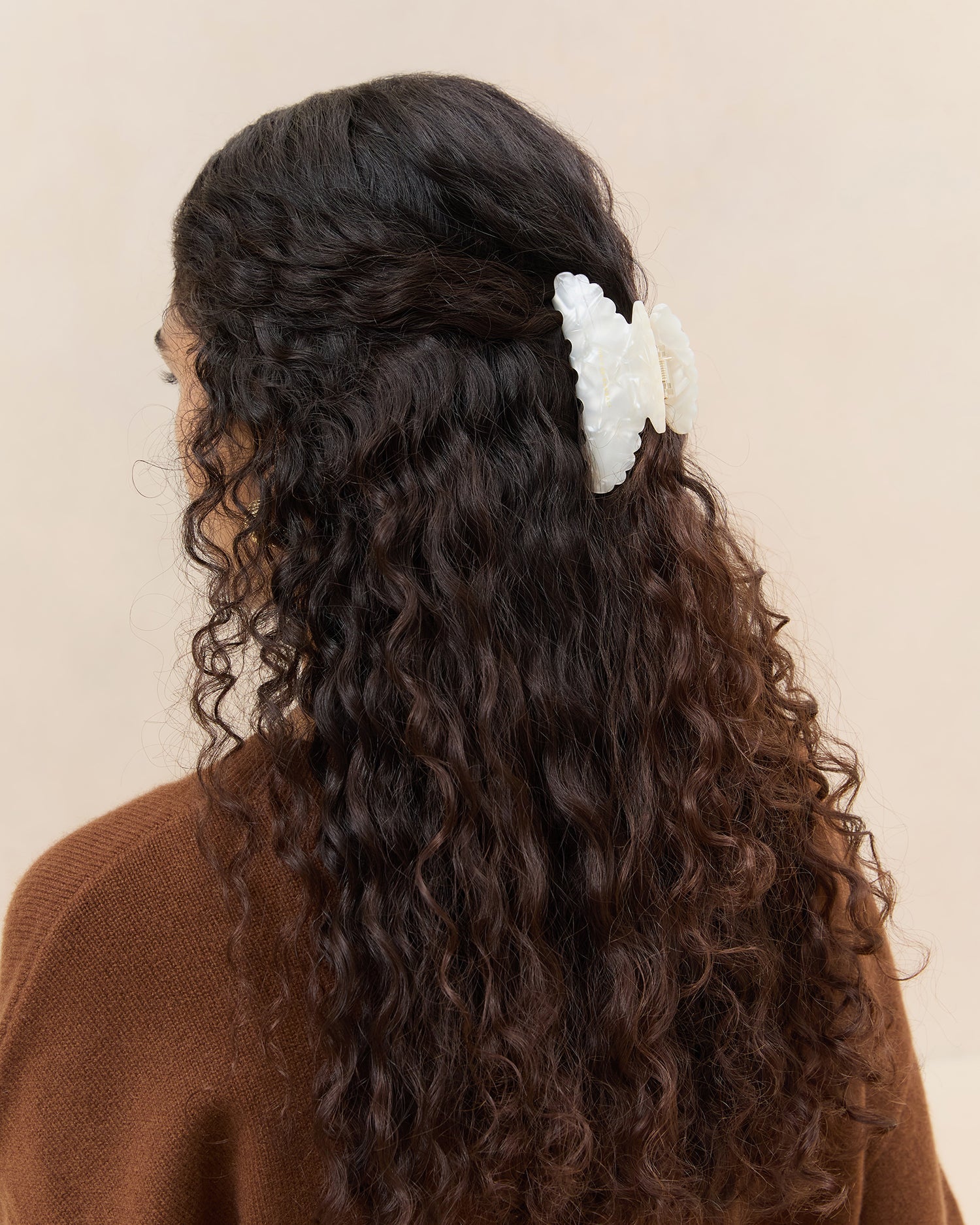 Set of one Yuri hair claw clip and two Amari wavy barrettes, all in pearl acetate.