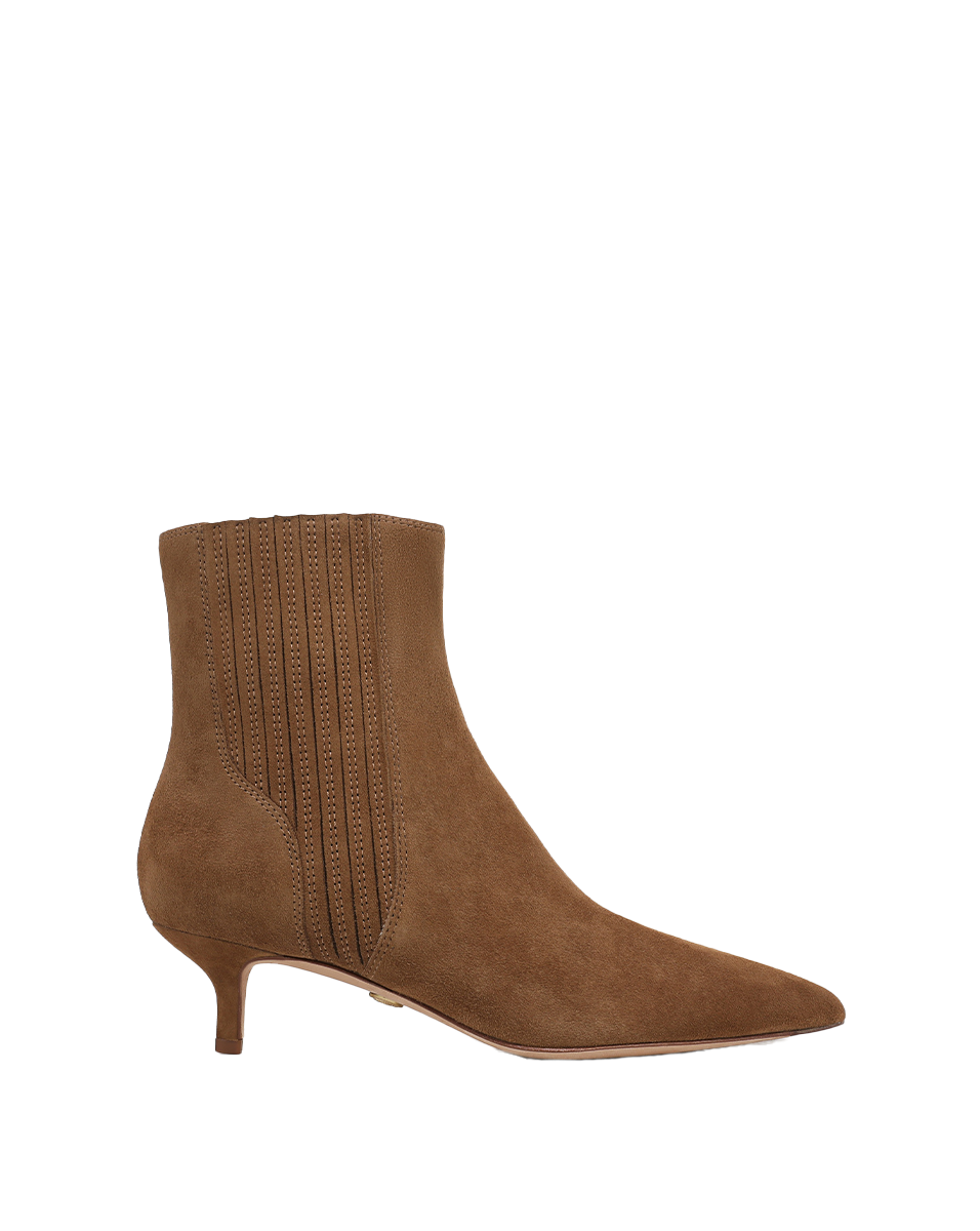 The best-selling Lisa bootie, now updated with a 1.75” kitten heel. Everything else you love about this cult classic remains the same—from the ribbed detailing that allows for pull-on ease to the pointy-toe finish. Style with your favorite dresses, skirts, pants, jeans, you name it—this suede favorite is endlessly versatile.