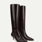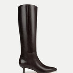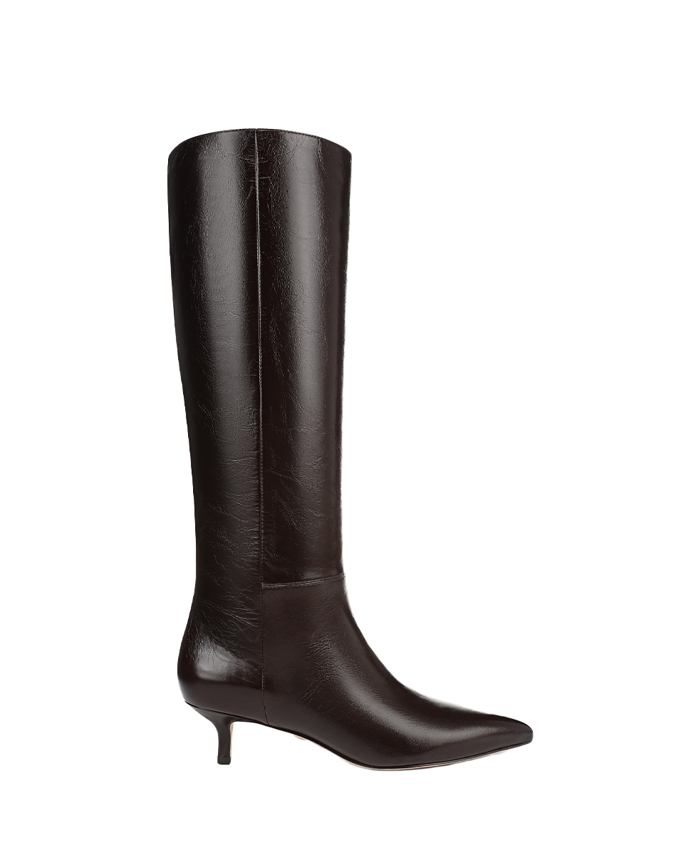 The best-selling Lisa Tall Boot, now updated with a kitten heel. Crafted in premium burgundy leather, it features a knee-high shaft and a sleek pointed toe. A timeless addition to your closet, this pull-on style is perfect for date night and beyond. Style them with your favorite dresses and skirts; you'll get it right, every time.