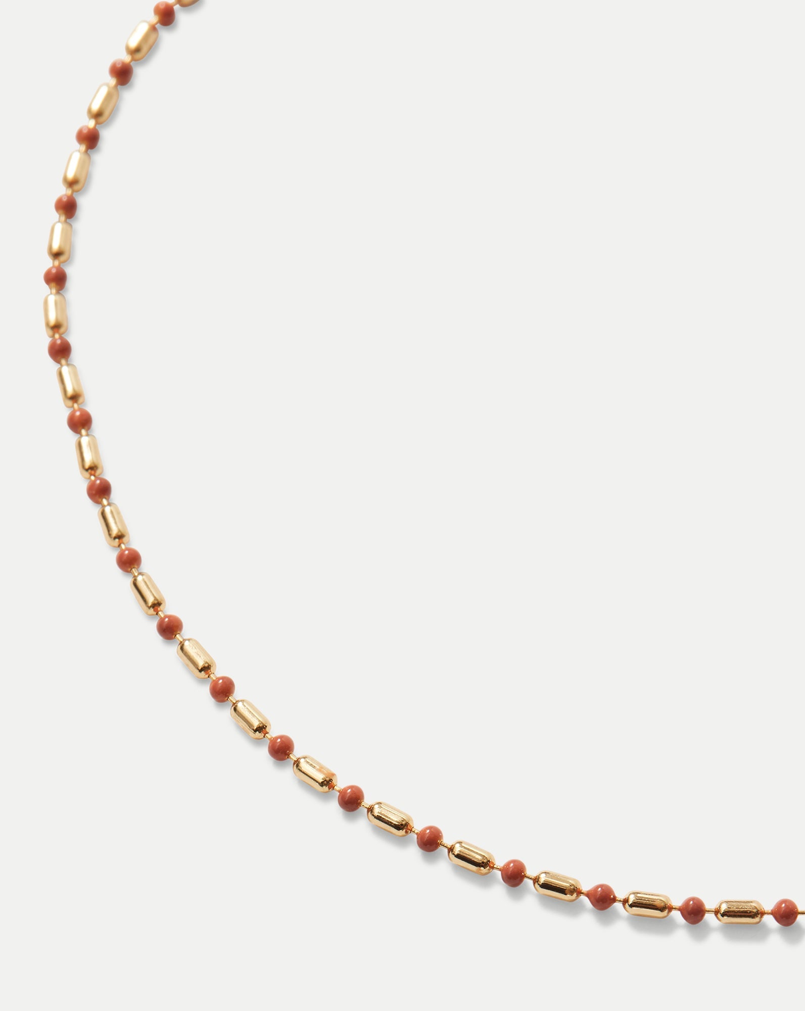 The effortless everyday necklace, made for layering. This dainty, 18-inch chain features a mix of 12-karat gold-plated brass and mauve enamel-covered beads, securing with a Q clasp for ease. Layer with the Enamel Bead Chain Necklace (or two, or three), mixing and matching colors, and style with your favorite VB tees, tank tops, and swimwear.