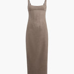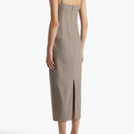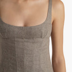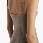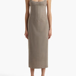 A refined sheath dress reimagined by corsetry-inspired shaping and a sleek fit. Framed by adjustable straps and a cutaway neckline, with darted bust for a push-up effect that is ideal for smaller busts. Slightly squared armholes, concealed back zipper, and back slit for ease of movement.