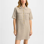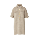 An elevated take on the sweater dress. Crafted from pure Merino wool with an exceptionally soft feel, the Madden knit dress is as luxurious as it is practical. Cut for a boxy fit, it features two front patch pockets, cuffed elbow-length sleeves, and a crisp collar that flows into a half placket. Chunky gold statement buttons complete the look. It’s made for day-to-night versatility—just add flats for day and swap in strappy heels after dark.