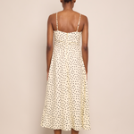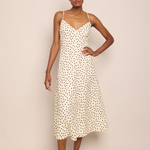 • V-neck spaghetti strap, fit-and-flare midi dress