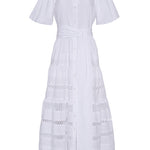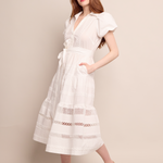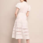 • Midi bubble sleeve shirtdress with lace inserts