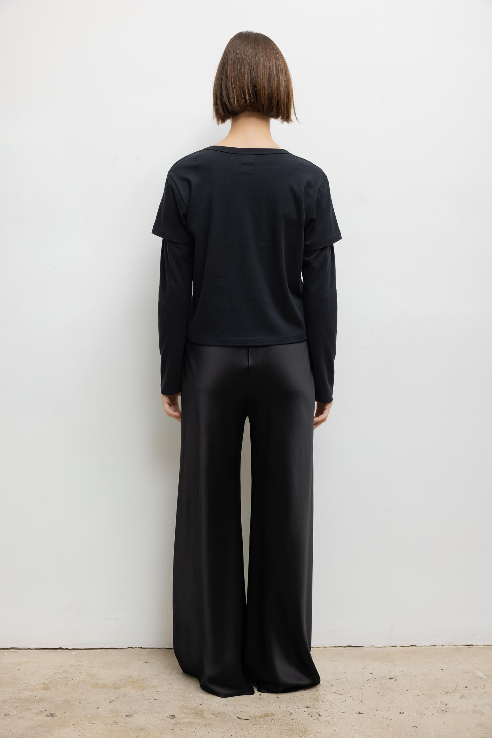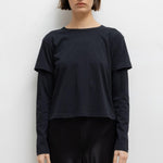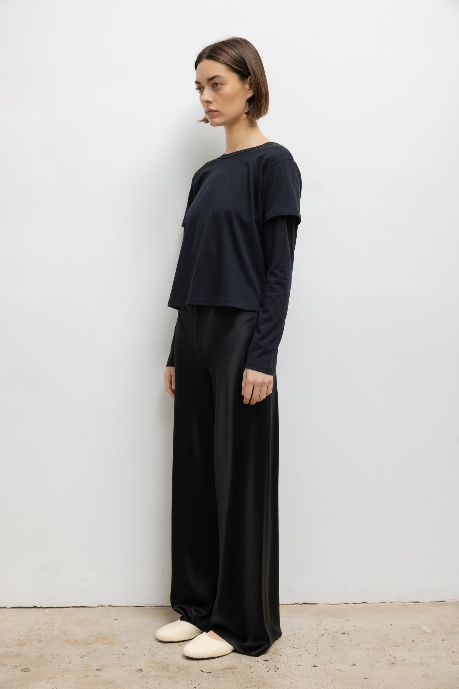 Our no. 1 bestselling classic tee, The Margo, combines with The Margo Long Sleeve into one layered top, offering the look of a layered tee without the fuss of extra fabric. We're wearing this about town with The Kyoto Carpenter Pant in Brick - then to bed with The Pointelle Boxer Pant.