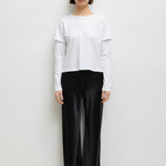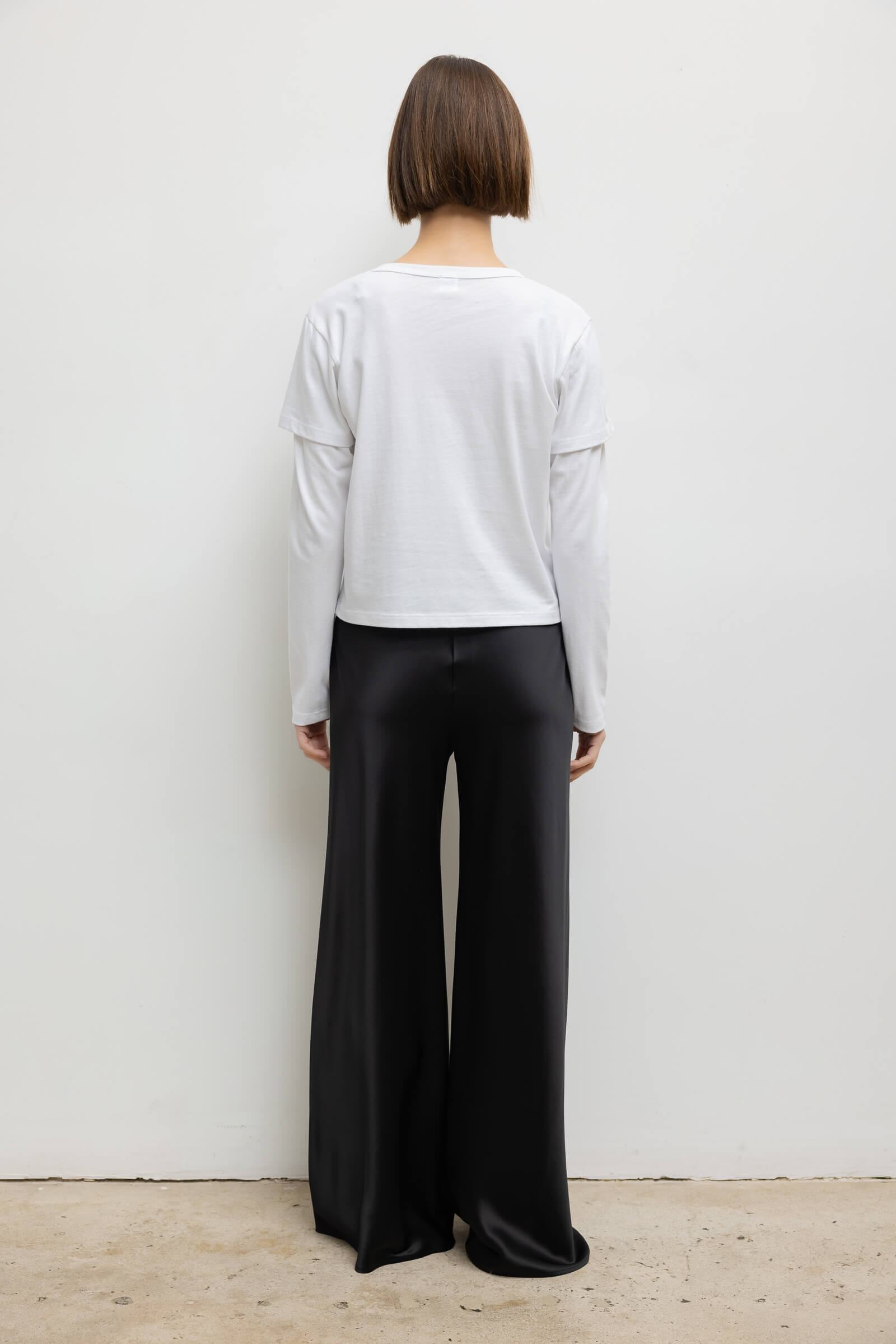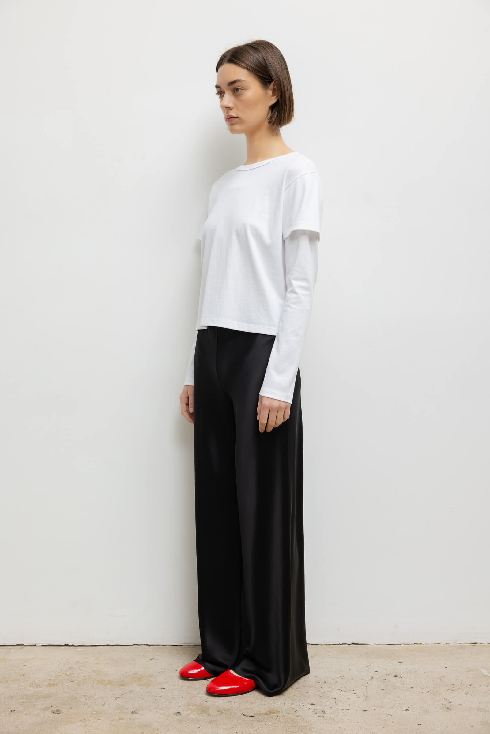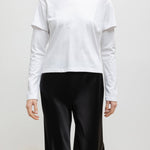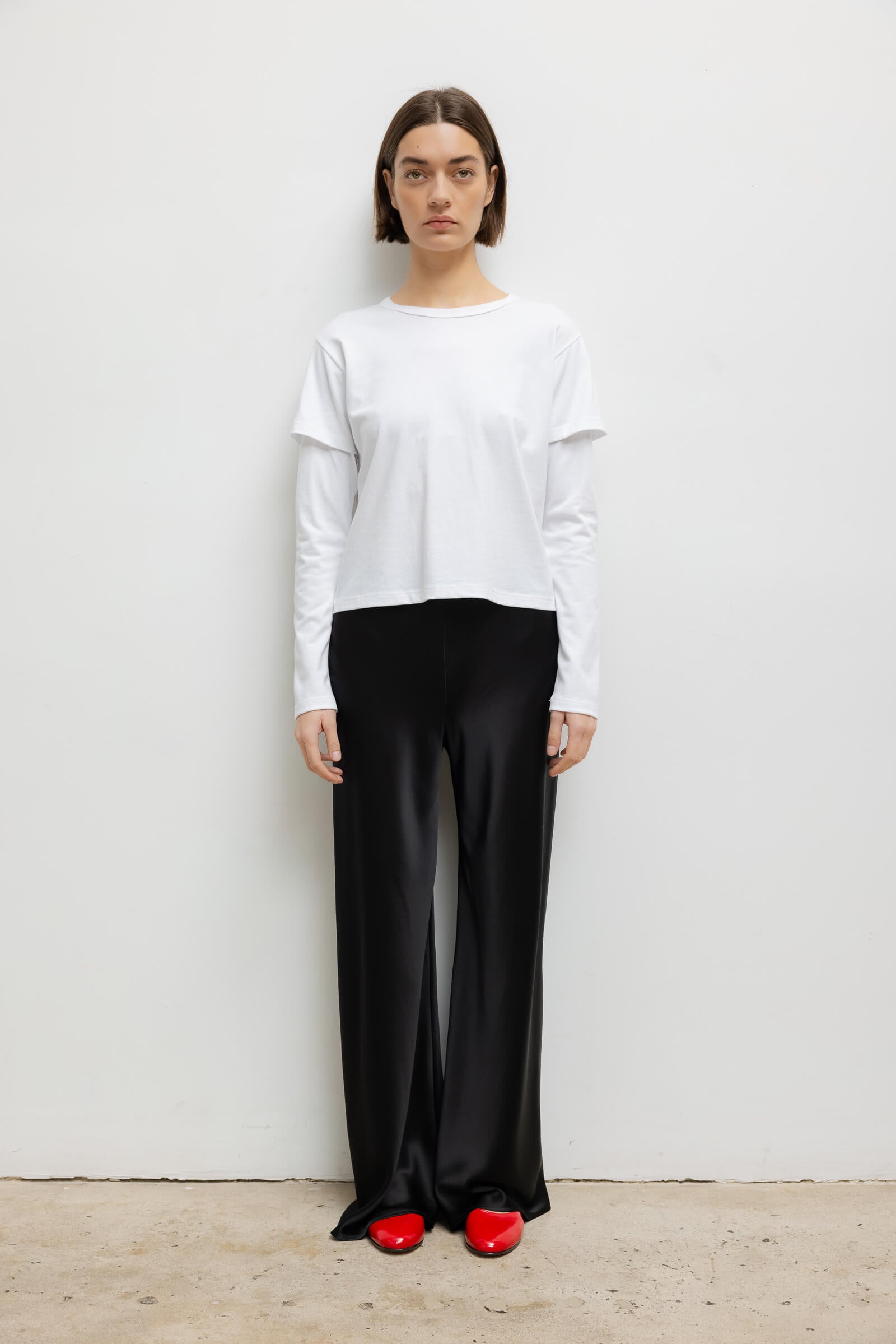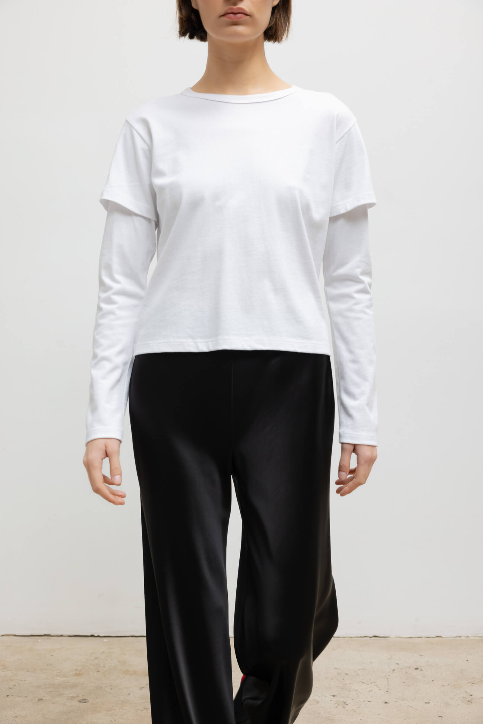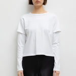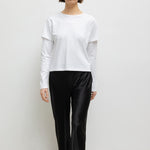 Our no. 1 bestselling classic tee, The Margo, combines with The Margo Long Sleeve into one layered top, offering the look of a layered tee without the fuss of extra fabric. We're wearing this about town with The Kyoto Carpenter Pant in Brick - then to bed with The Pointelle Boxer Pant.
