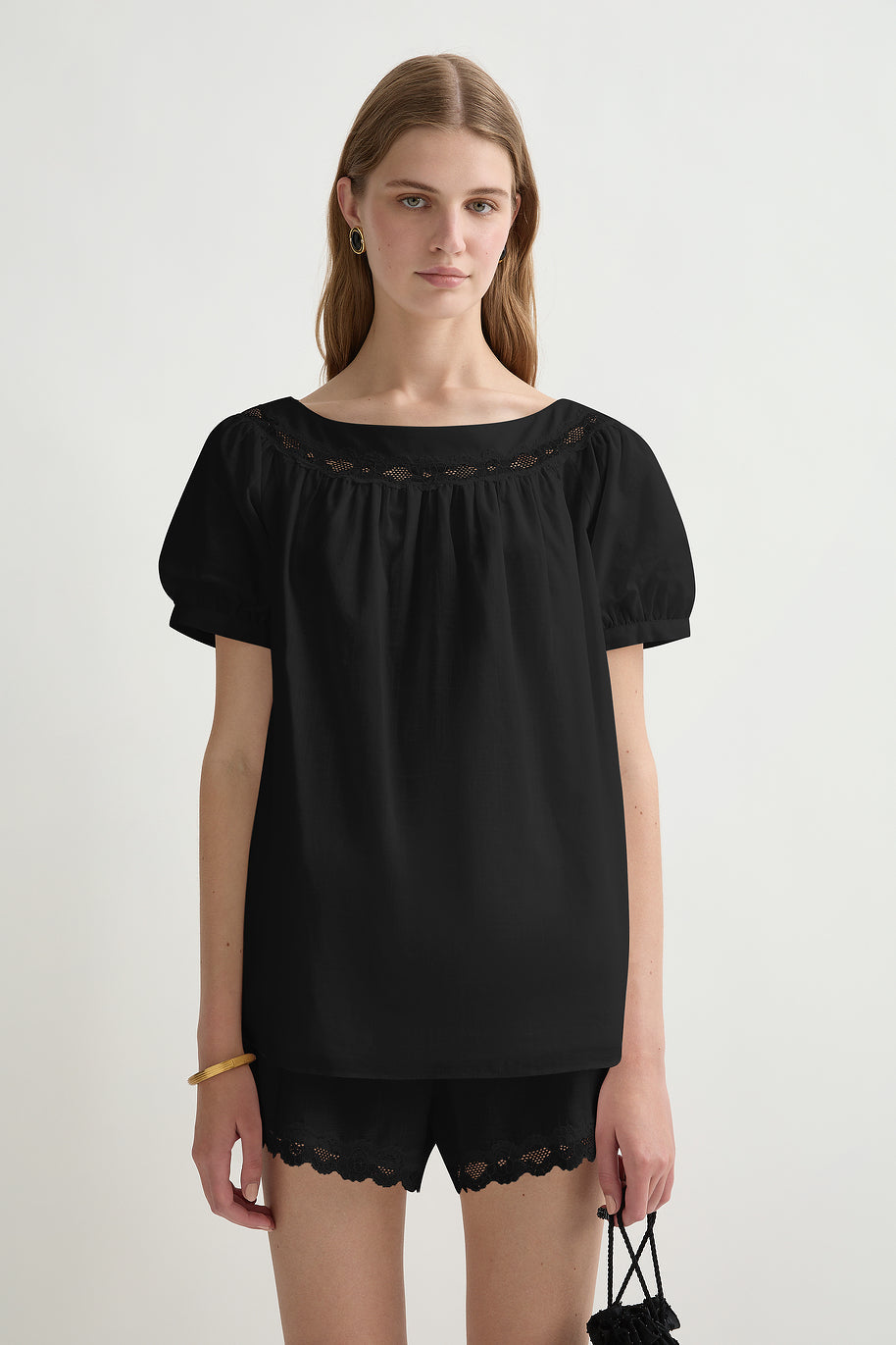 • Billowy short sleeve