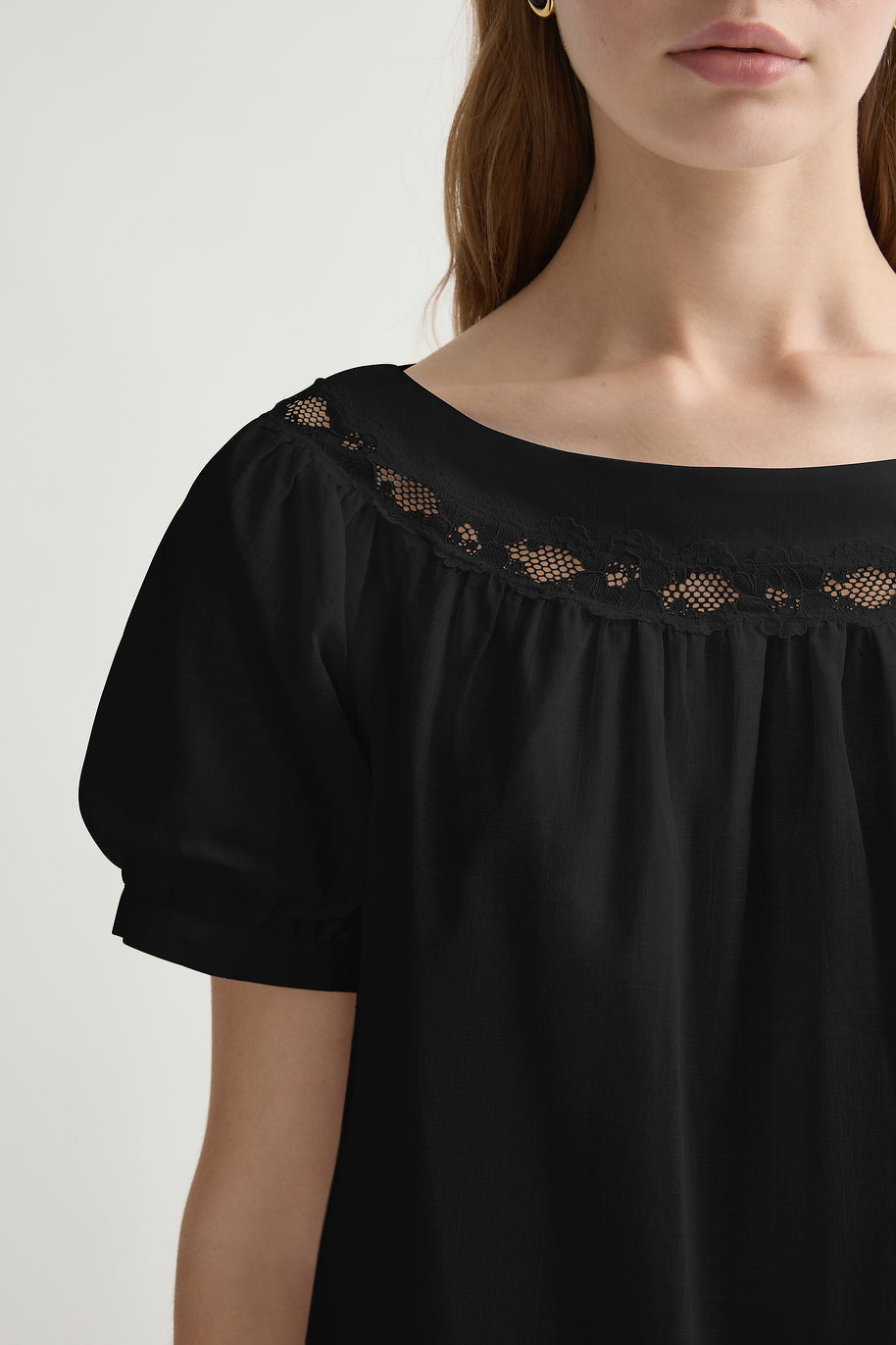 • Lace trimming at neckline