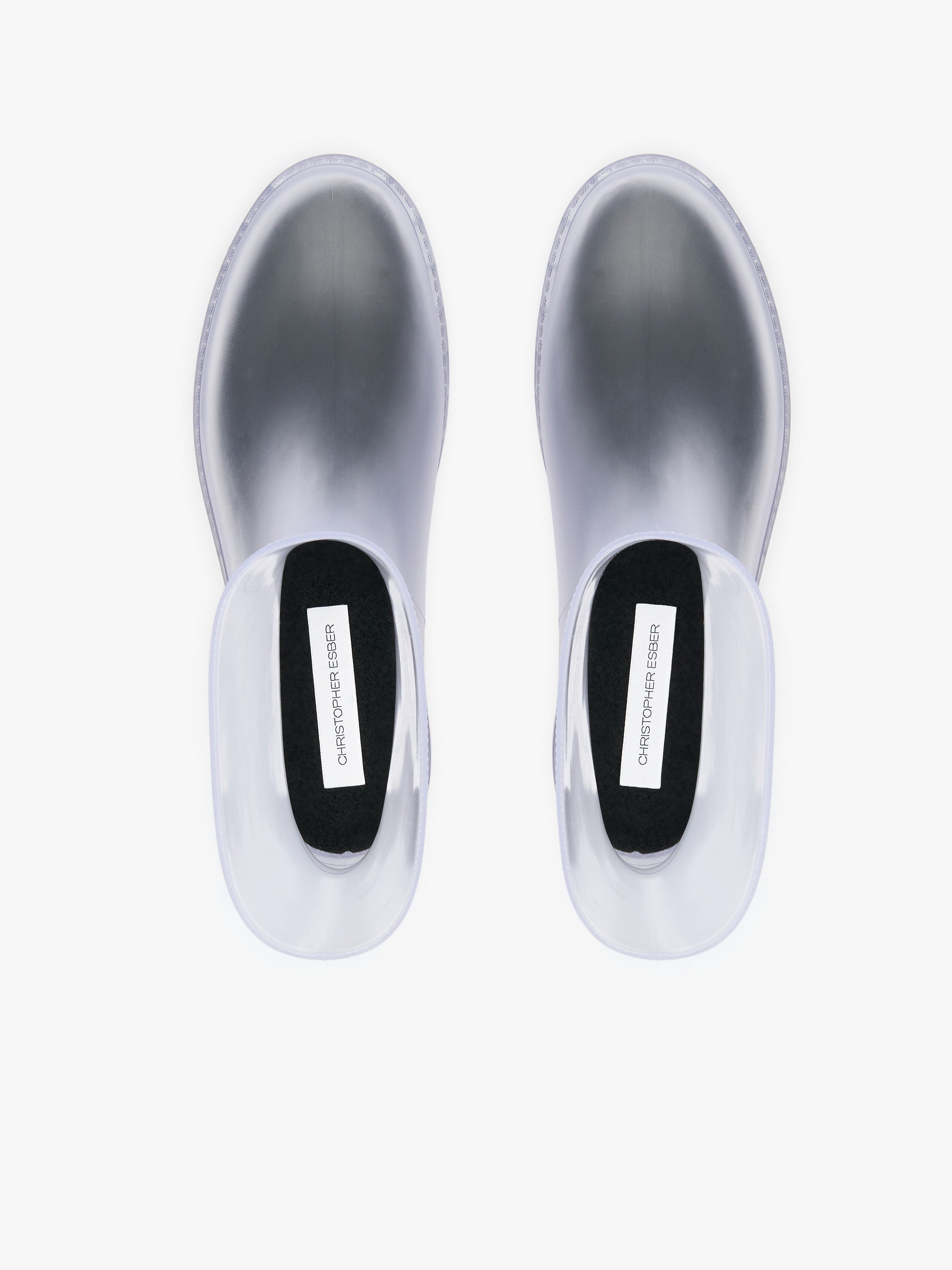 A minimalist tonal flip flop that slips on with ease. Hand crafted in Italy made in a semi- transparent, jelly-like 100% PVC.