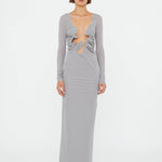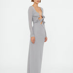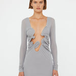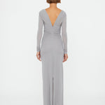 The Moulded Venus Shawl Dress is cut in soft stretch jersey and sculpted through the body with a plunging neckline, framed by artfully ruched spirals. Signature Christopher Esber Venus hardware detail is engineered to contour and define, revealing skin through negative space and anchored in a clean, column silhouette.