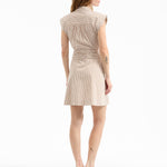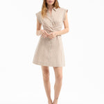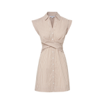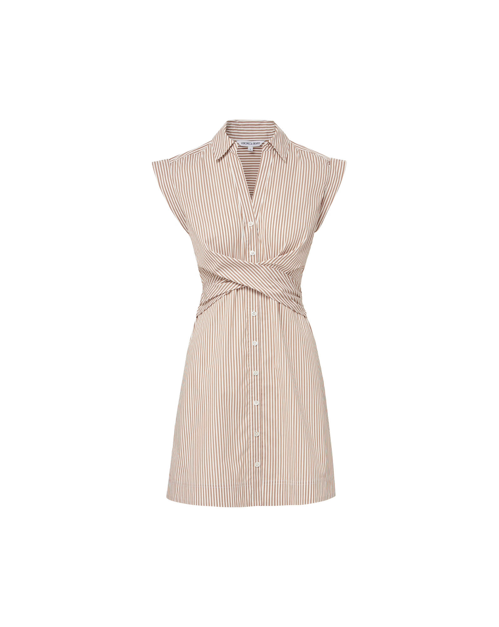 The shirtdress, reimagined. Expertly tailored from crisp cotton, the Nagano mini dress is defined by a crossover waist construction that creates a flattering cinching effect. Finished with cap sleeves and a collared V-neck, the dress comes in versatile brown-and-white stripes. Pair with flat sandals and shades for the perfect weekend look.