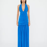 Grafted with free-form lines, the Orion Gown is defined by hand-sculpted pleats that trace a plunging V neckline and extend into racerback straps. Rich in texture, the silhouette falls into a fluid, gathered skirt that moves with ease. Style with tonal heels or sculptural mules for elevated evening dressing.