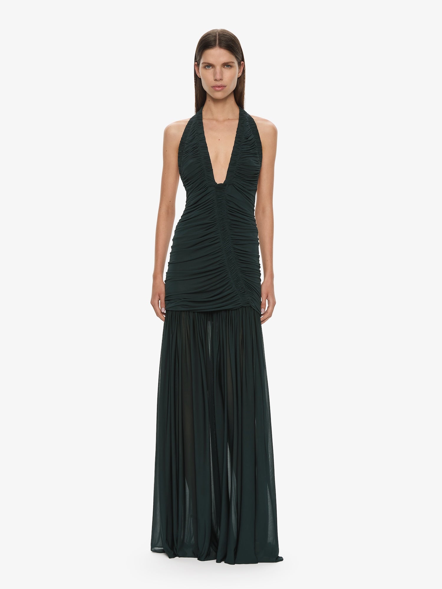 Grafted with free-form lines, the Orion Gown is defined by hand-sculpted pleats that trace a plunging V neckline and extend into racerback straps. Rich in texture, the silhouette falls into a fluid, gathered skirt that moves with ease. Style with tonal heels or sculptural mules for elevated evening dressing.