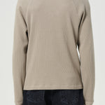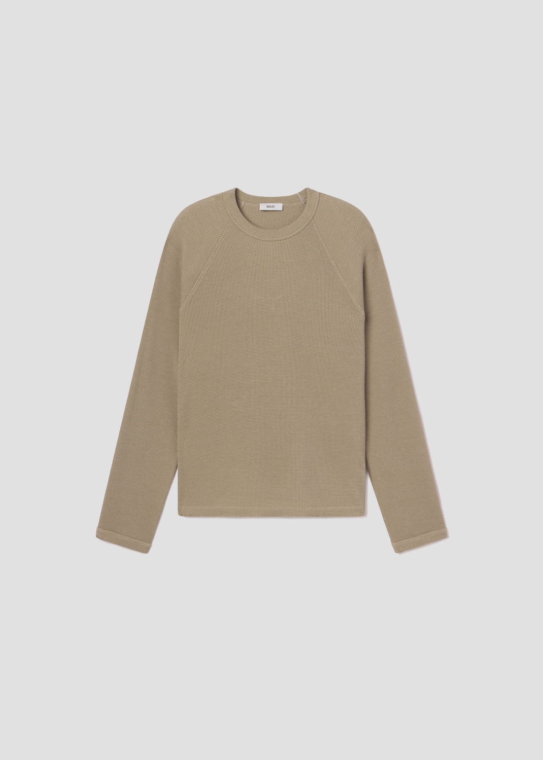 A medium washed-out grey long sleeve tee made from soft textured waffle fabric.