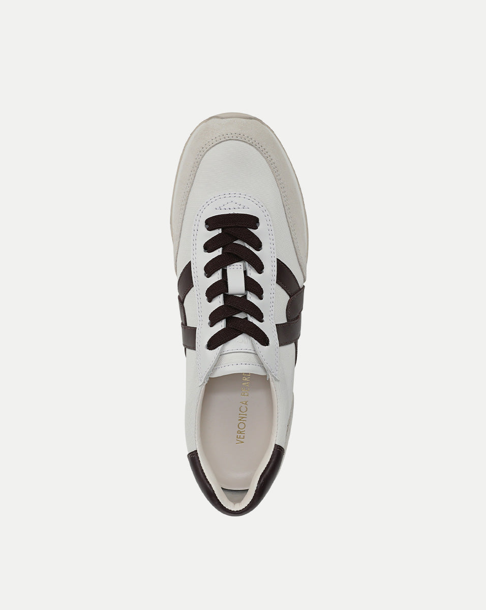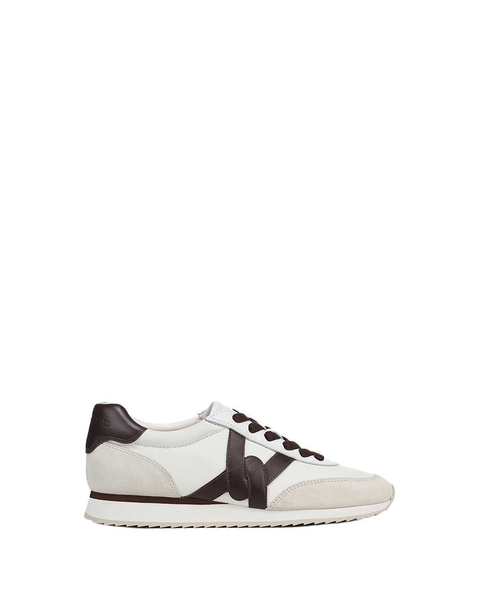 An athleisure classic, elevated. The Penrose is a polished, everyday sneaker crafted from premium suede, leather, and nylon in shades of brown and white. Blending comfort and style, it features a padded leather collar, a cushioned midsole with a subtle one-inch lift, and a rubber outsole for grip and versatility. An interlocking V design—a nod to our logo—completes the look. Equal parts sporty and chic, it’s a go-to for on-duty and off-duty days on the move.