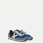 An athleisure classic, elevated. The Penrose is a polished, everyday sneaker crafted from premium suede, leather, and nylon in shades of navy, sky blue, and white. Blending comfort and style, it features a padded leather collar, a cushioned midsole with a subtle one-inch lift, and a rubber outsole for grip and versatility. An interlocking V design—a nod to our logo—completes the look. Equal parts sporty and chic, it’s a go-to for on-duty and off-duty days on the move.