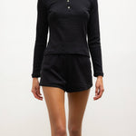 Cut in our nostalgic Pointelle Cotton, The Pointelle Mini Short features our signature pinhole stripes, dainty eyelets, and scalloped edging. Make it a matching set with any Pointelle top.