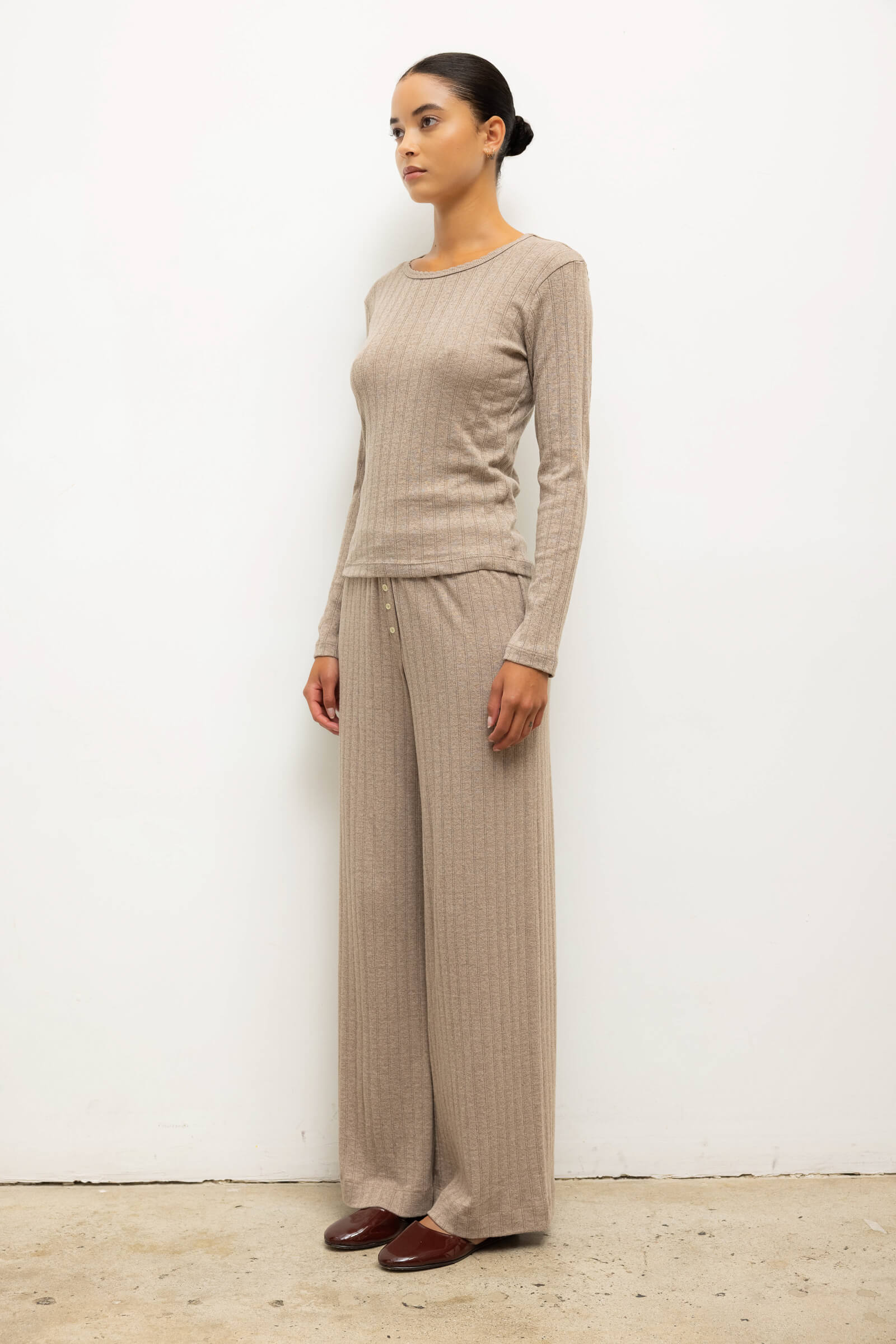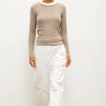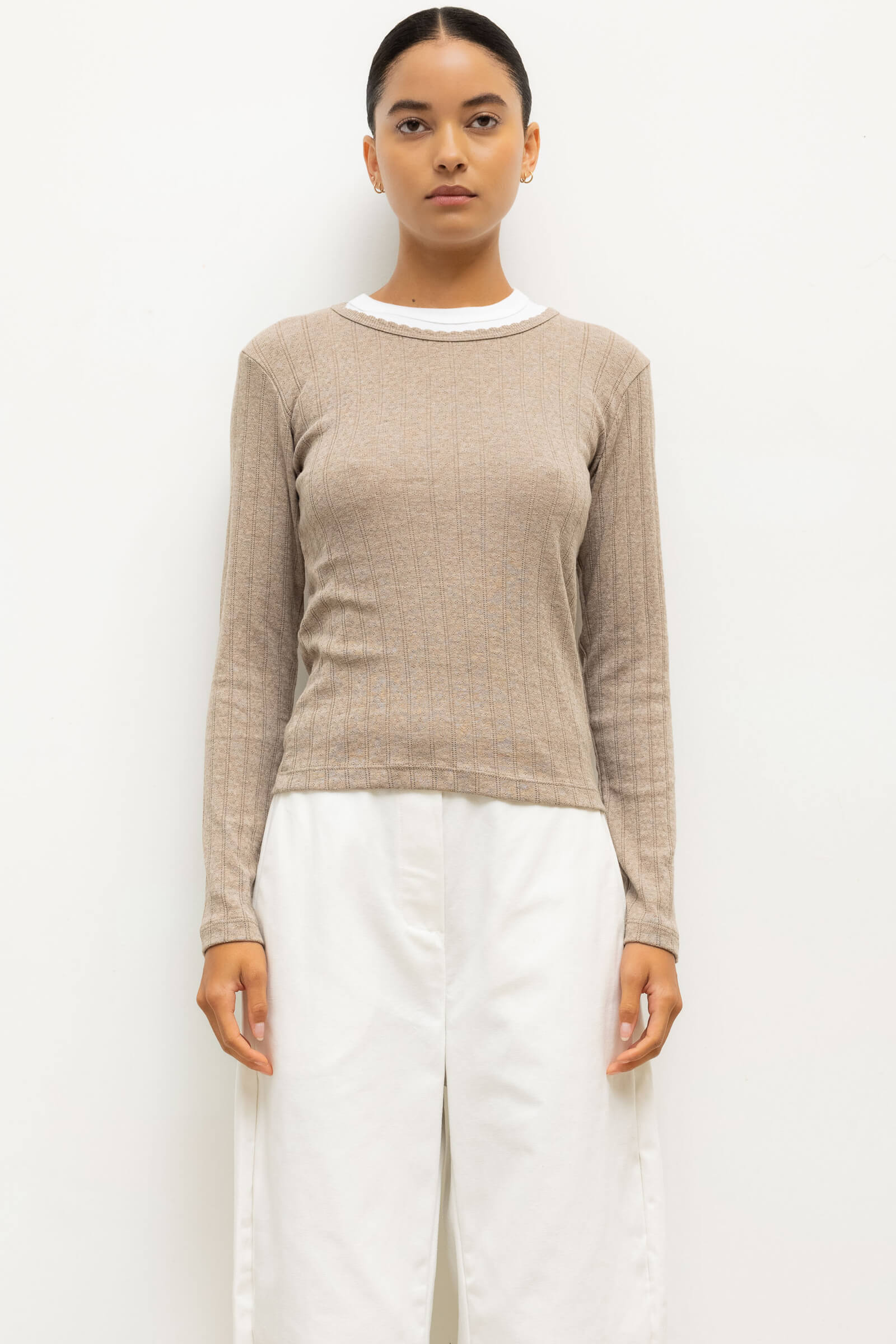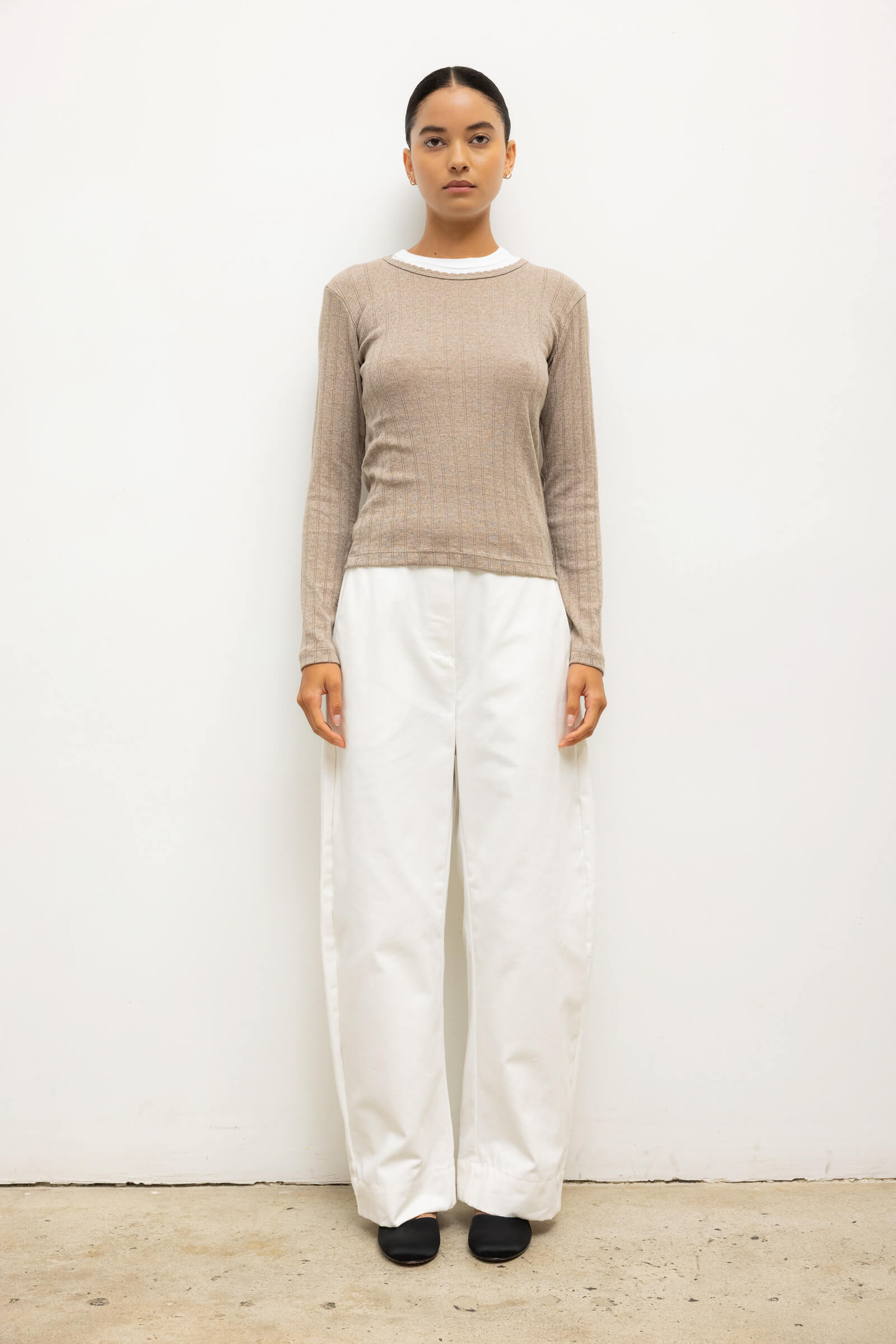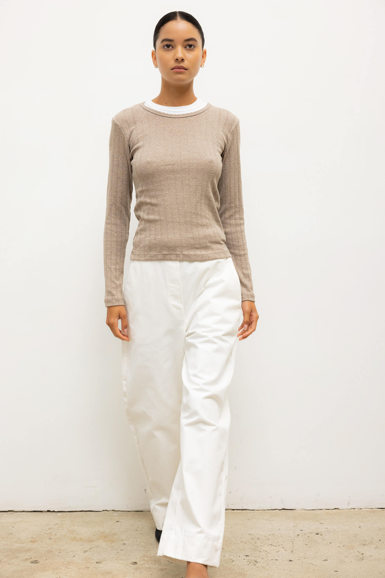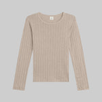 Cut in our nostalgic Pointelle Cotton, The Pointelle Slim Fit Long Sleeve features a classic crew neckline with our signature pinhole stripes, dainty eyelets, and scalloped edging. Full length with fitted long sleeves.