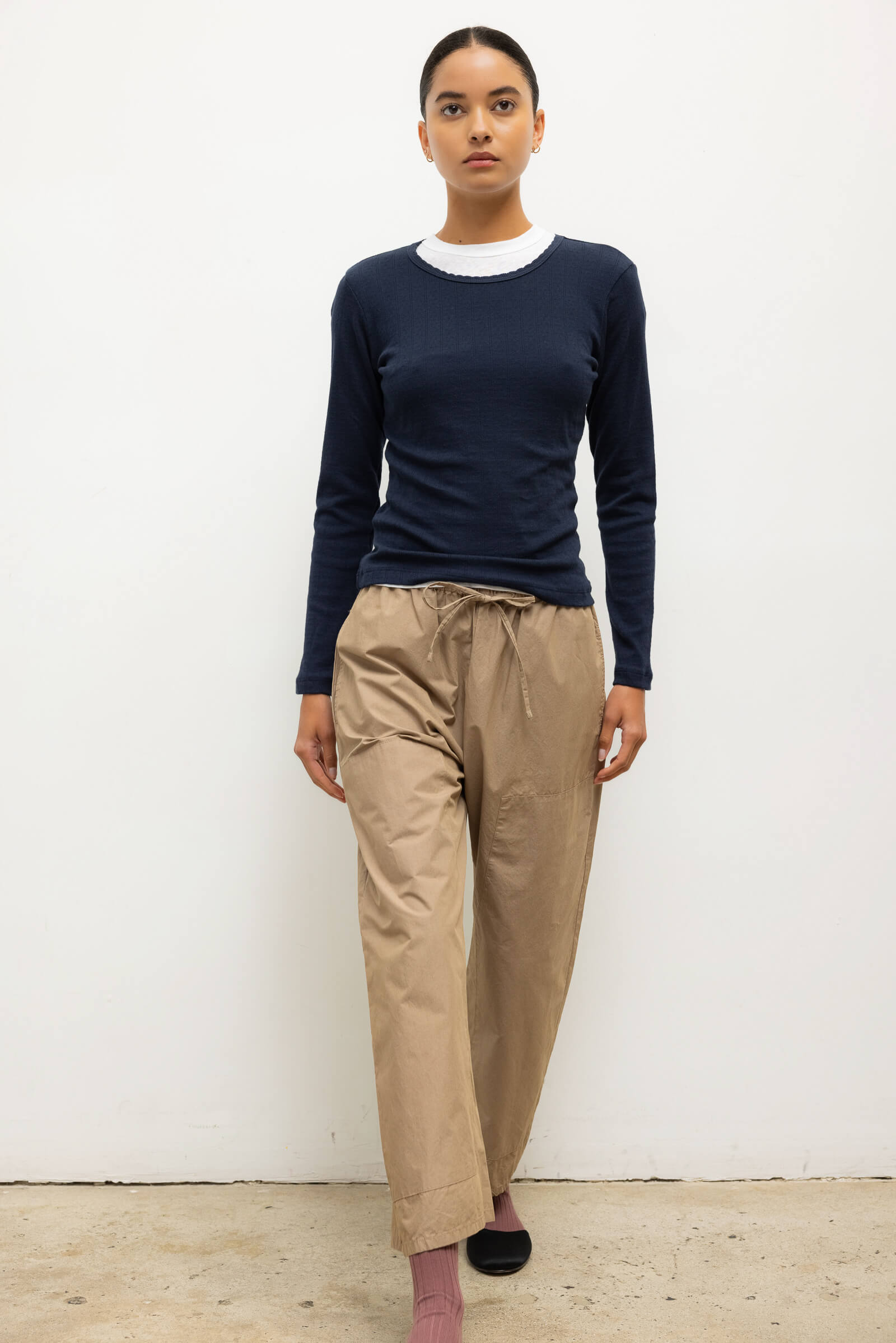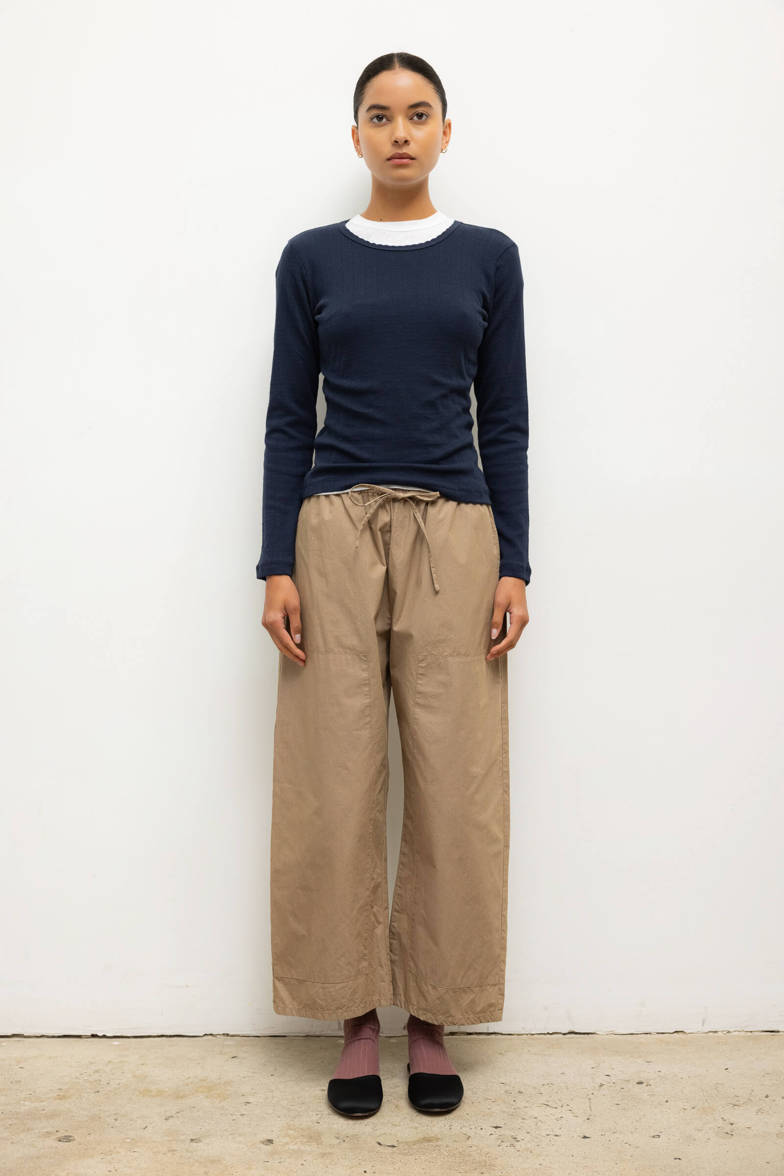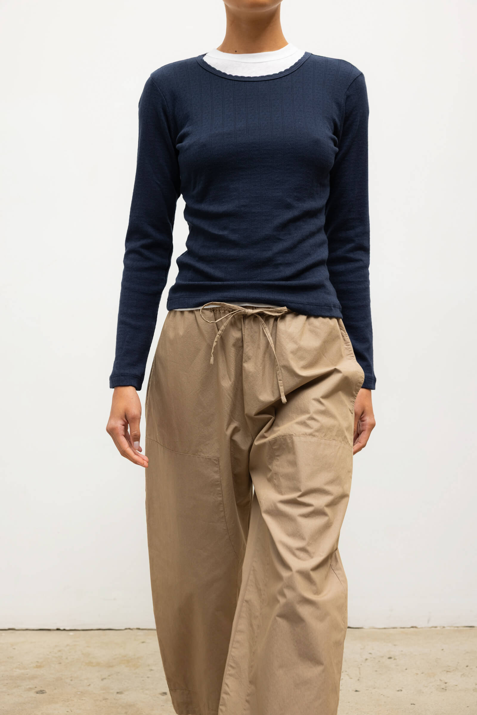 Cut in our nostalgic Pointelle Cotton, The Pointelle Slim Fit Long Sleeve features a classic crew neckline with our signature pinhole stripes, dainty eyelets, and scalloped edging. Full length with fitted long sleeves.