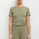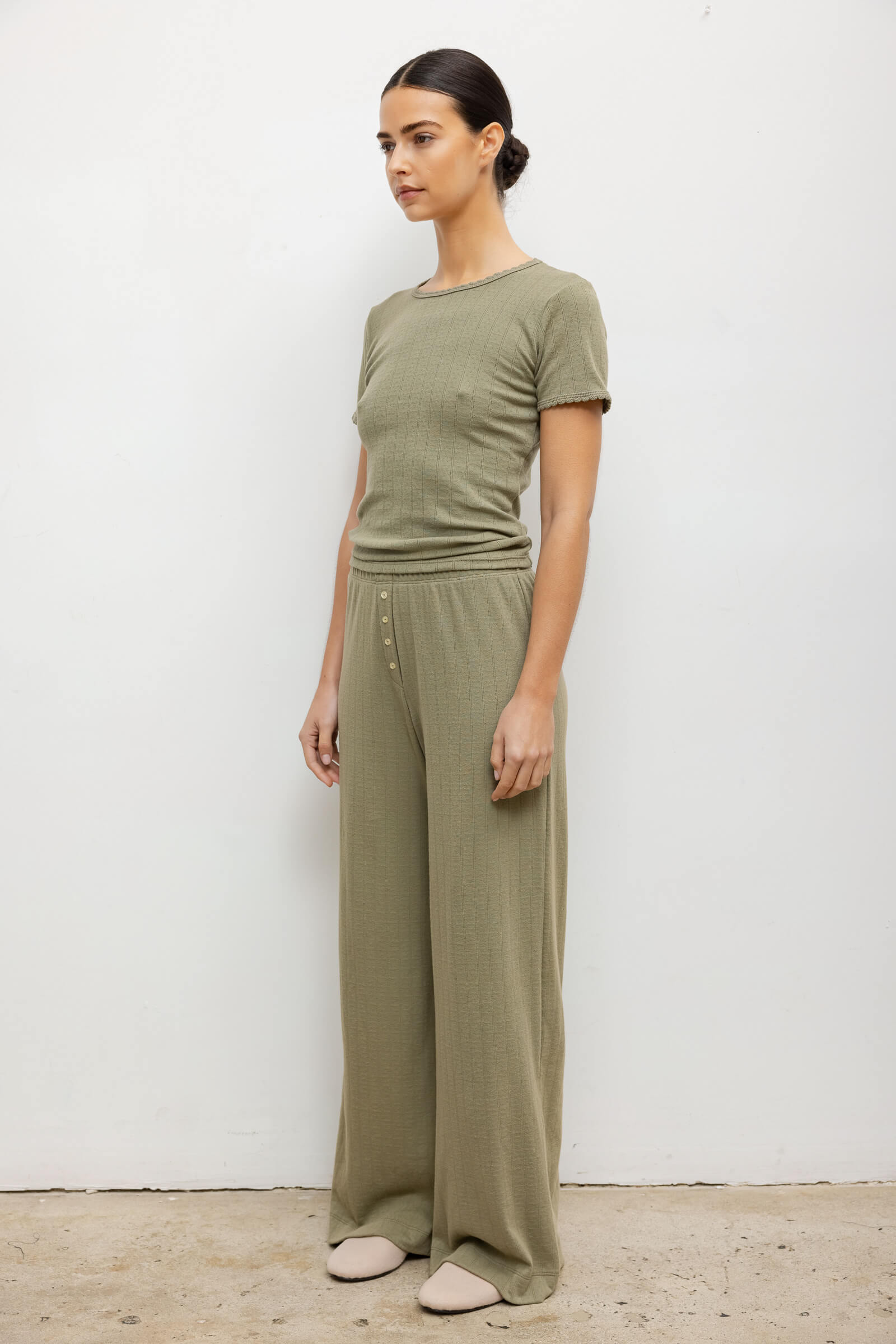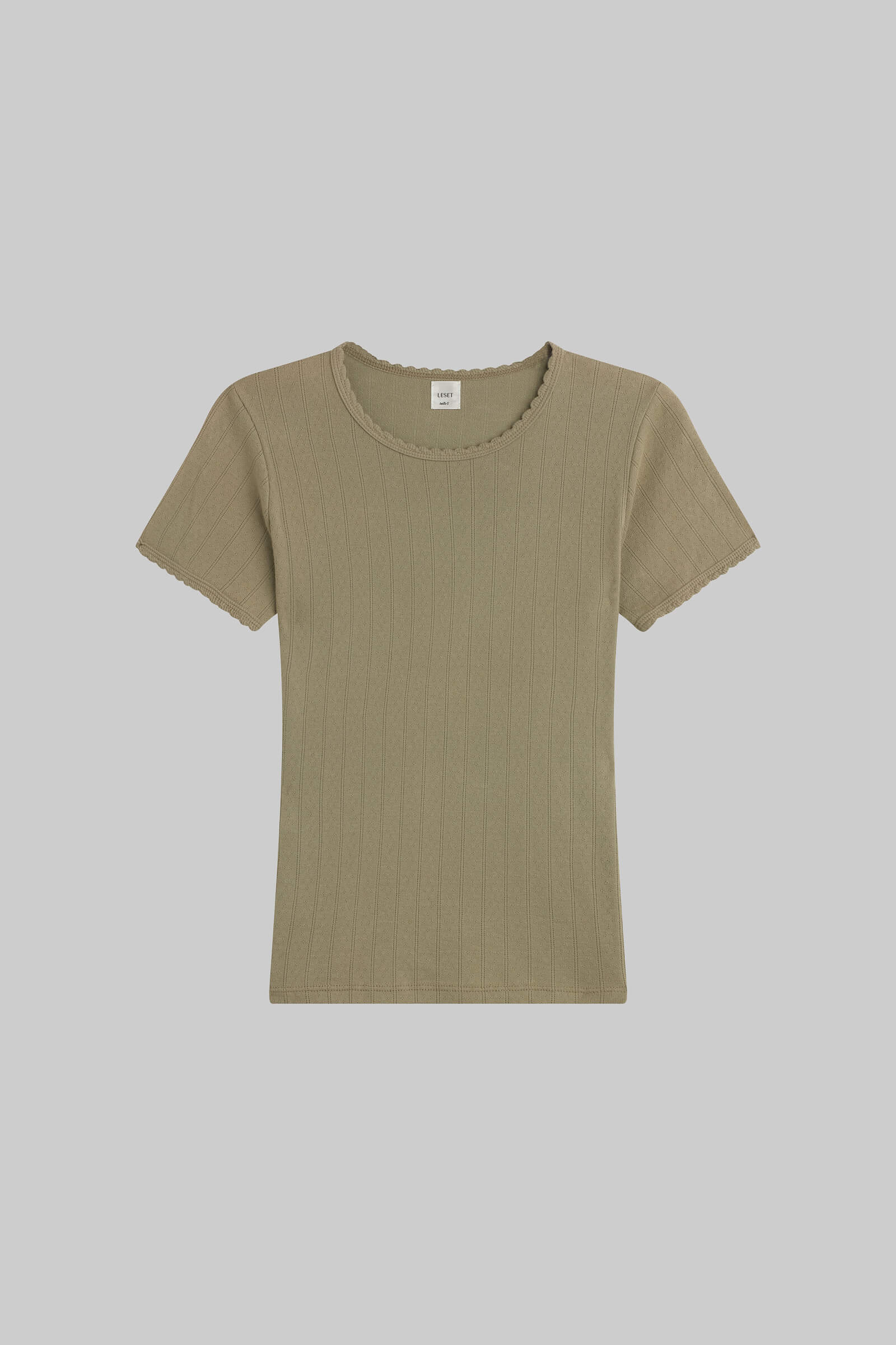 Cut in our nostalgic Pointelle Cotton, The Pointelle Slim Fit Tee features a classic crew neckline and fitted short sleeves with our signature pinhole stripes, dainty eyelets, and scalloped edging. Now in limited edition Cypress.