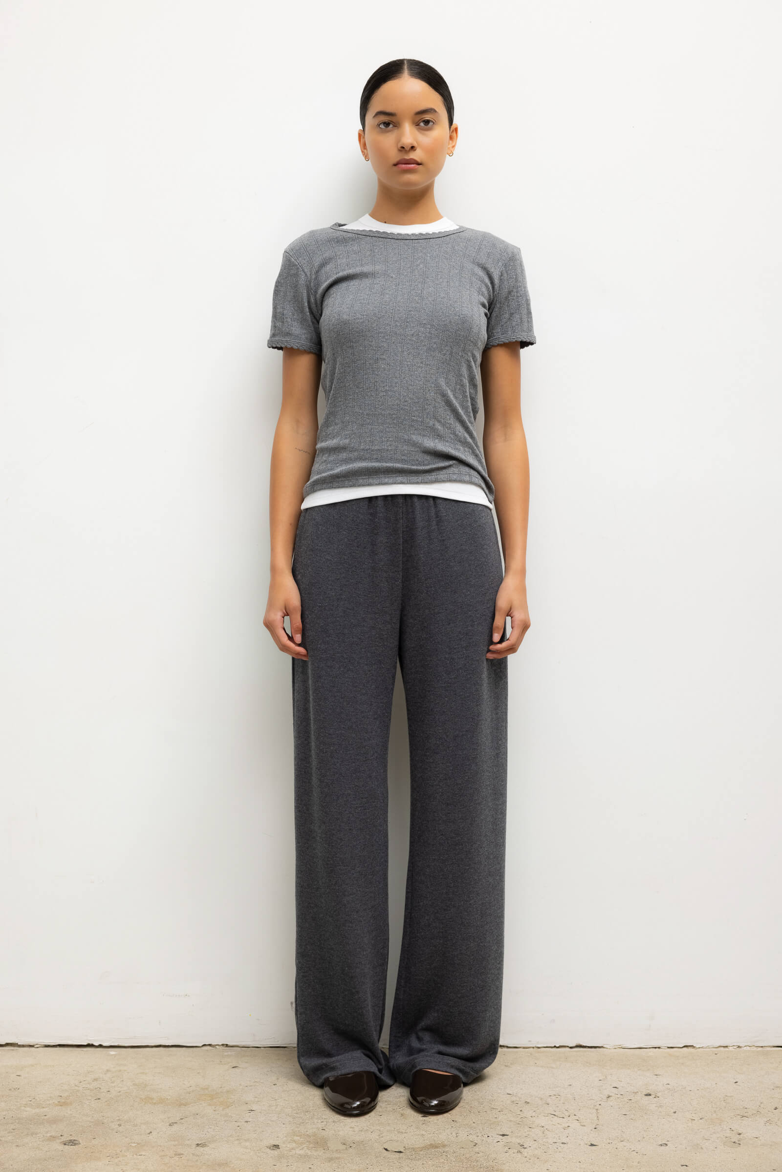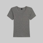 Cut in our nostalgic Pointelle Cotton, The Pointelle Slim Fit Tee features a classic crew neckline and fitted short sleeves with our signature pinhole stripes, dainty eyelets, and scalloped edging.