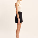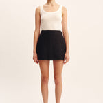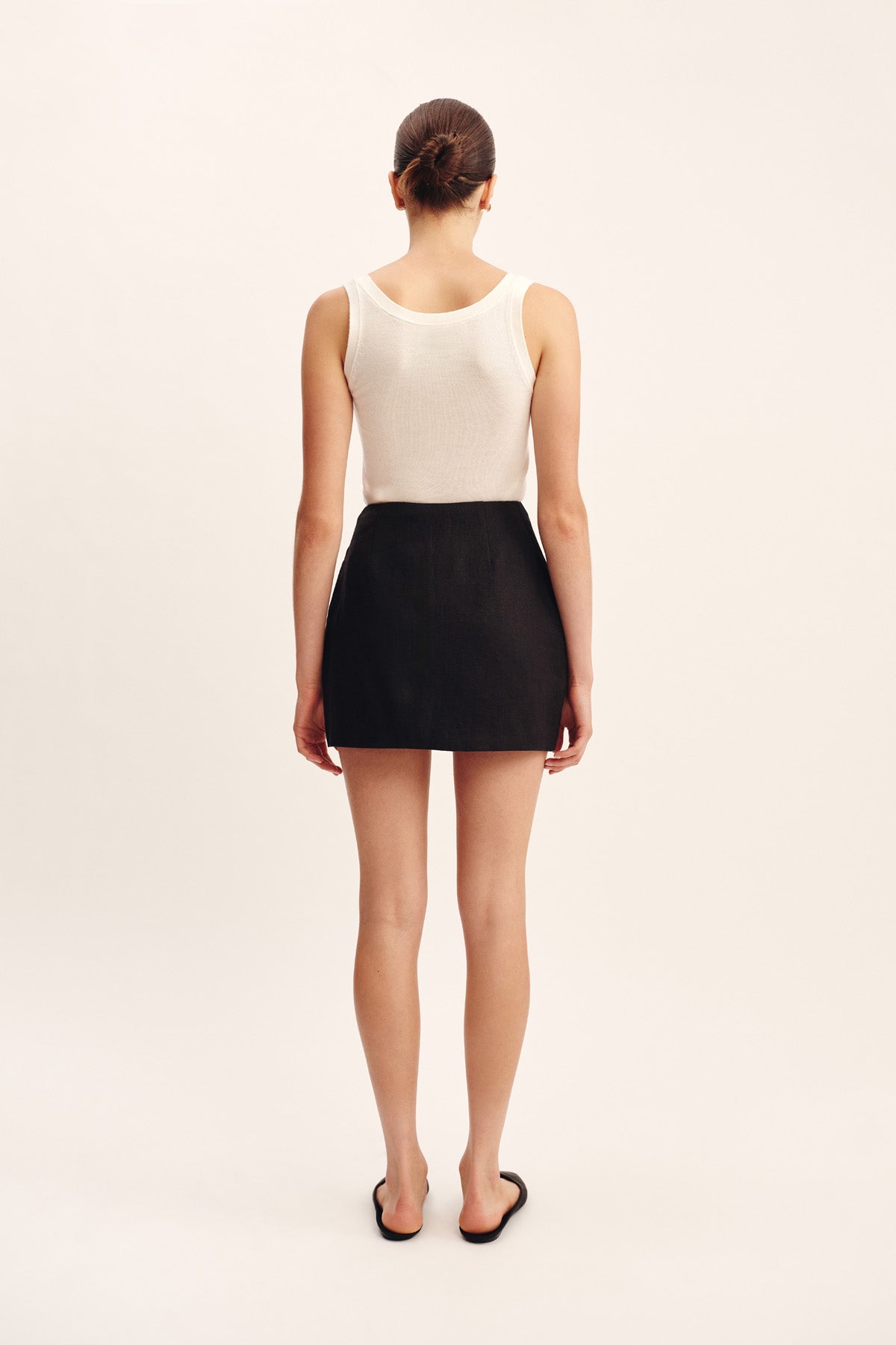 Crafted from premium linen and designed in a flattering A-line silhouette, the Alice Skirt falls to a mini length and is fitted with concealed internal shorts for added comfort and coverage.