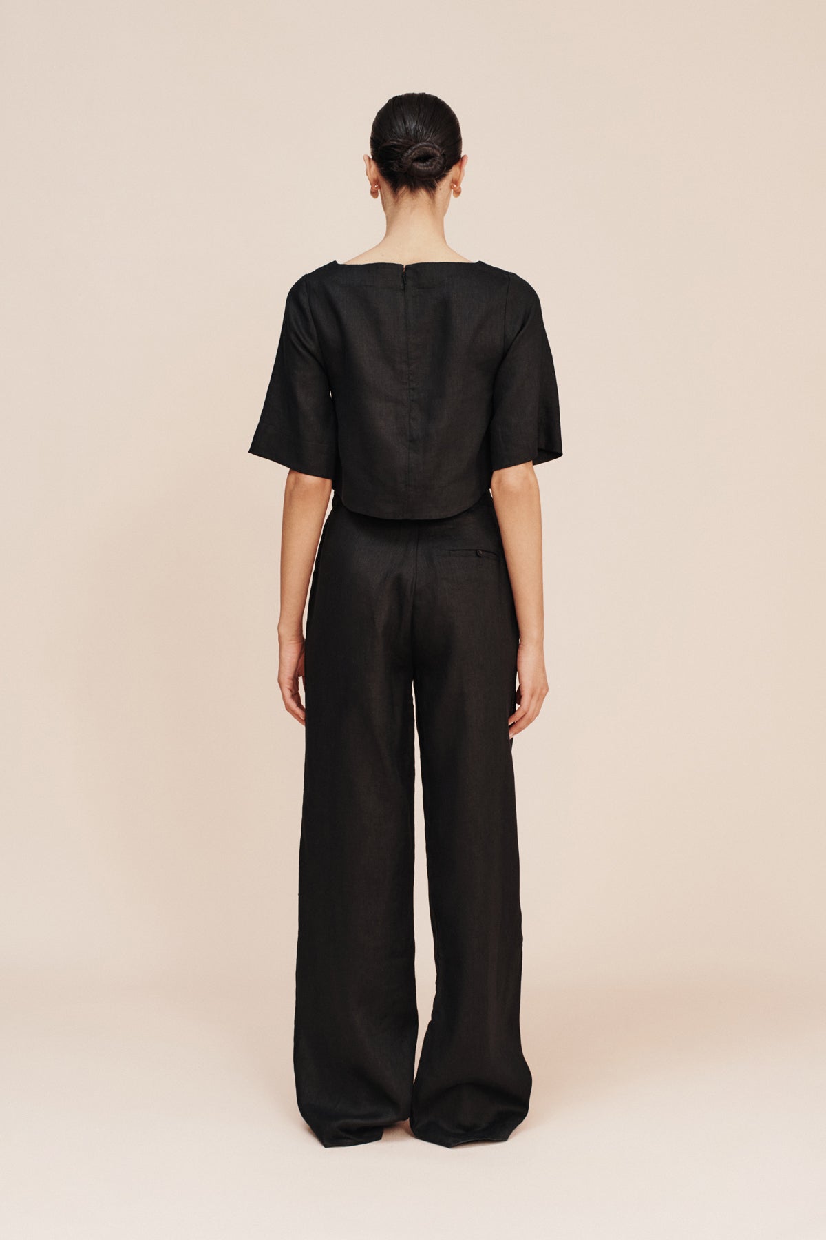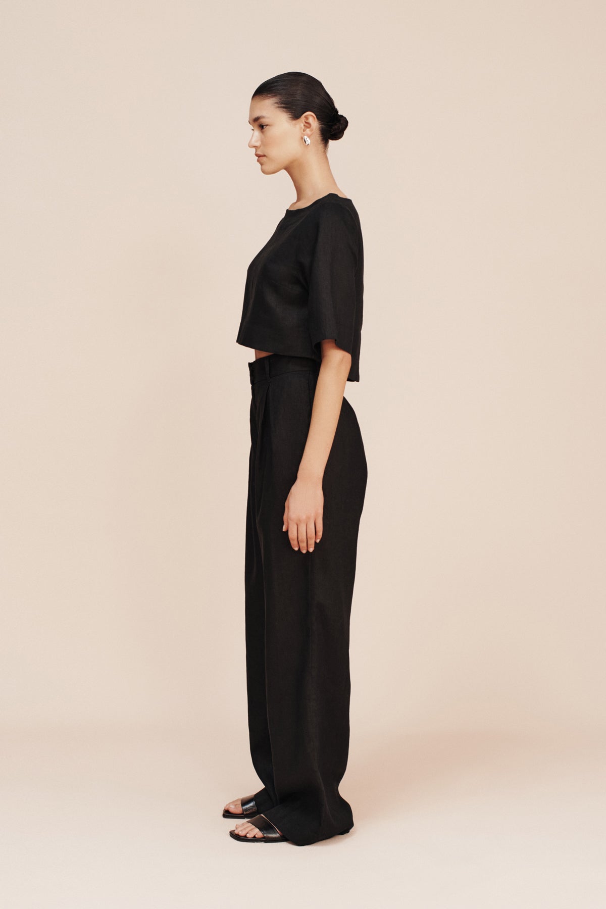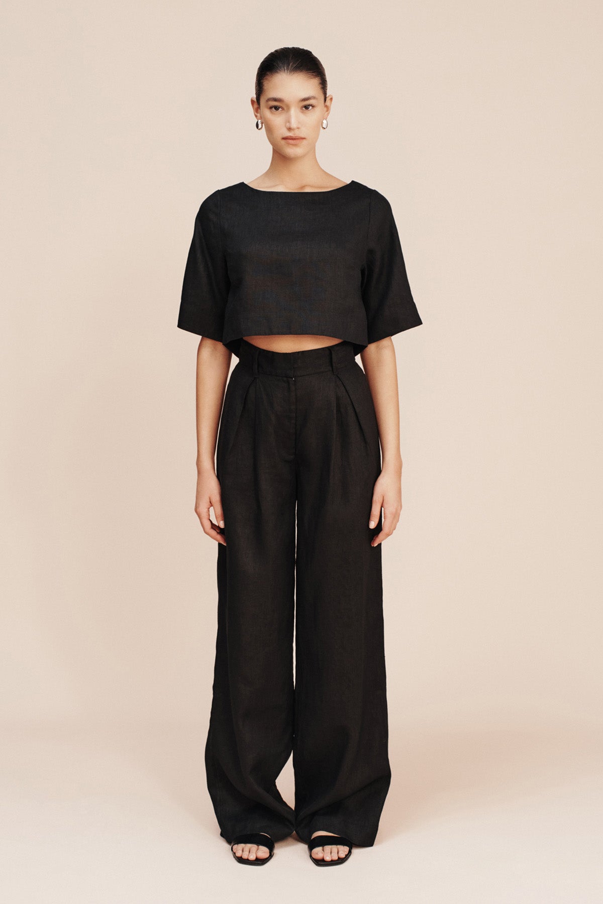 The Presley Trousers are cut from 100% linen and are designed to sit high on the waist. They feature roomy, wide legs and front pleats to create volume. Style yours as a set with the matching Shay Top or pair them with a simple tank and slides.