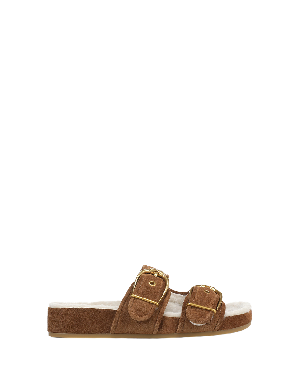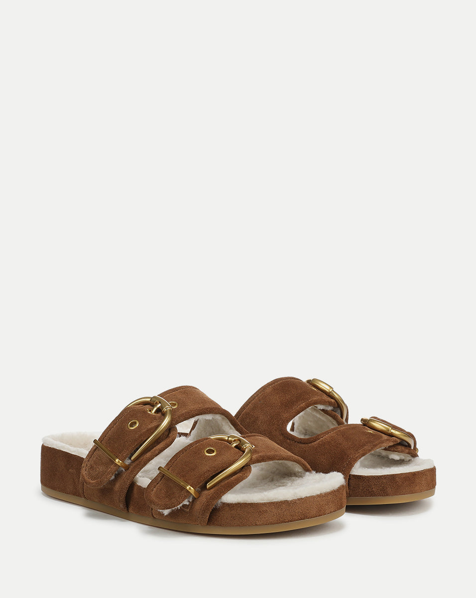 The Prue you know and love, now lined in luxe shearling. Crafted in premium suede, this utilitarian sandal features two wide straps accented with gold-toned buckles and a contoured footbed to support the shape of your foot. Endlessly versatile, it’ll be your new favorite for days on the go.