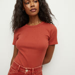 The summer tee, perfected. We obsessed over every detail, from the super-soft ribbing and the curve of the neckline to the short sleeves that fall just where you need it. Expertly crafted from premium stretch cotton, this is the ultimate foundation piece.