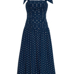 • Drop waist, shirred midi dress with ties