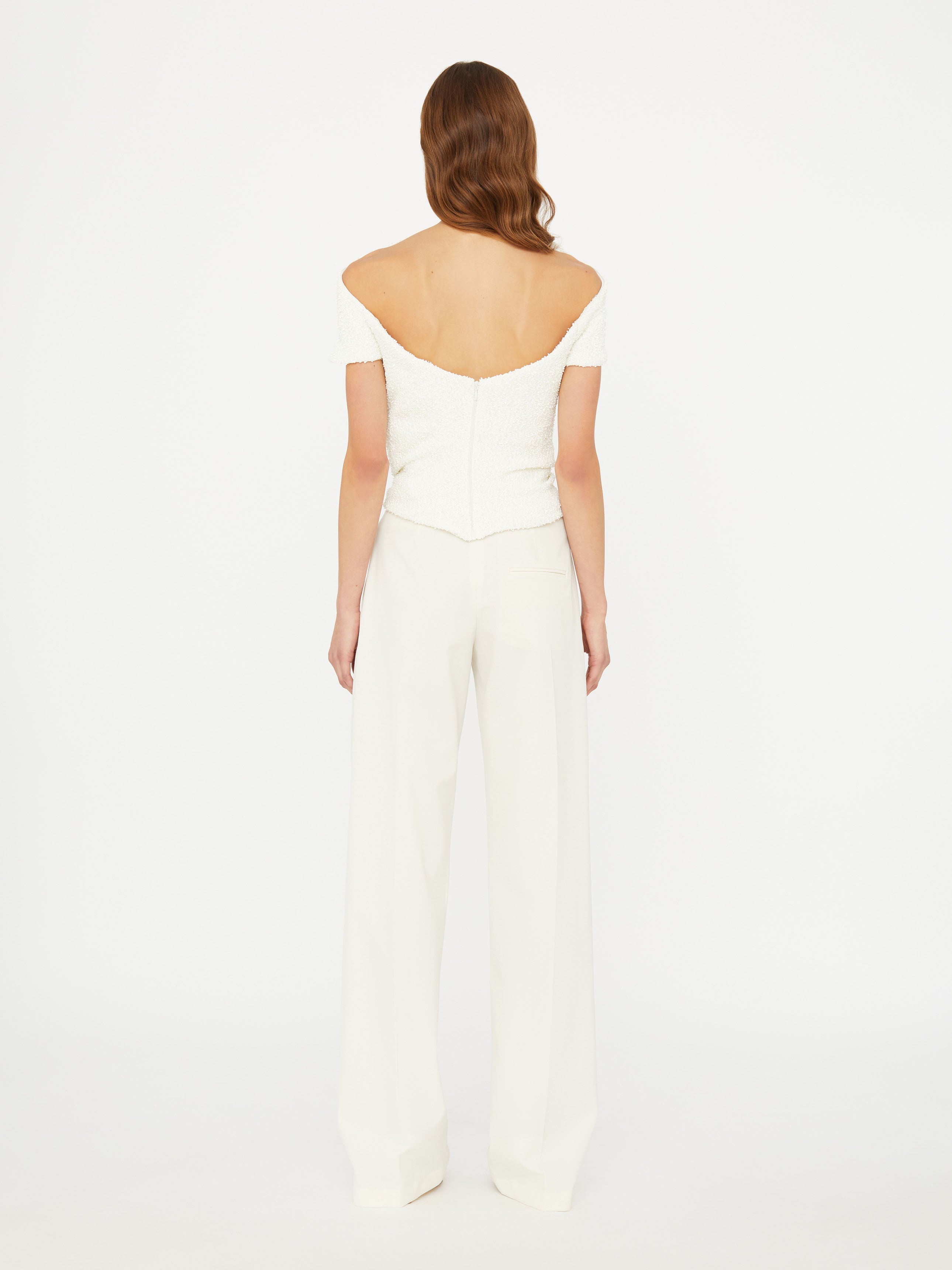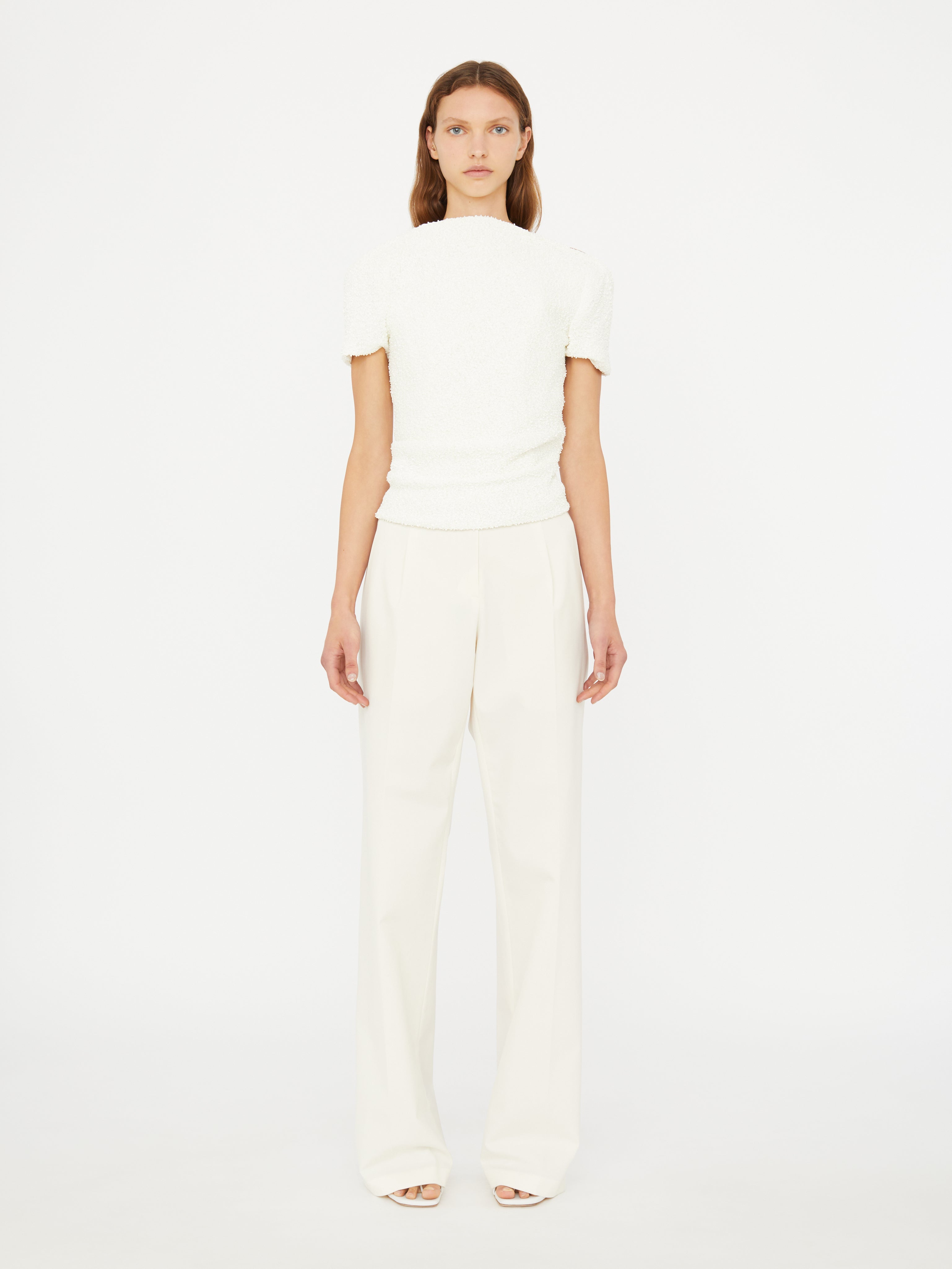 The Redux Twill Trouser crafted in fine wool adopts a tailored silhouette featuring a straight, full-length leg and a double back welt pocket detail. The mid-rise trouser has a concealed zip fly closure.