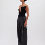 The Redux Leather Trouser crafted in soft matte leather, is a tailored silhouette featuring a straight, full-length leg and twin back pockets and panels. The mid-rise trouser has a concealed zip fly closure.
