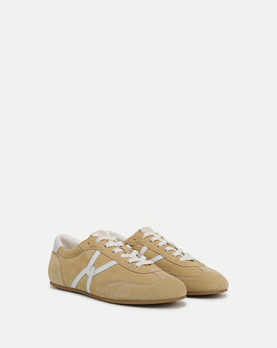 A streamlined take on the sneaker—now in trending butter yellow. Expertly crafted from luxe suede with leather accents, the Riviera is defined by its sleek and slim shape and colorful bungee laces. It comes complete with a padded collar, a cushioned footbed, and an interlocking-V design that nods to our logo.