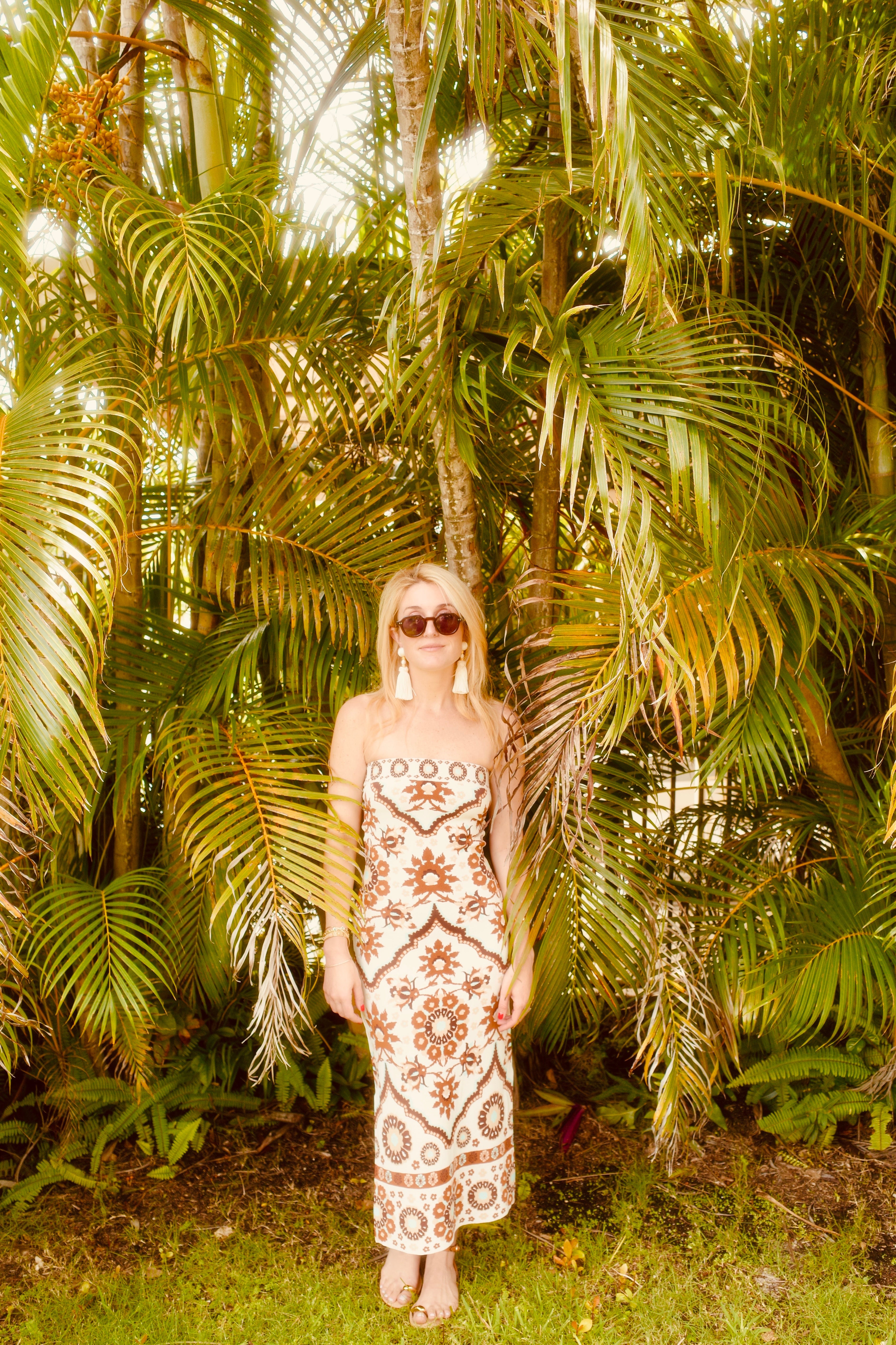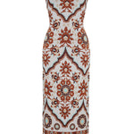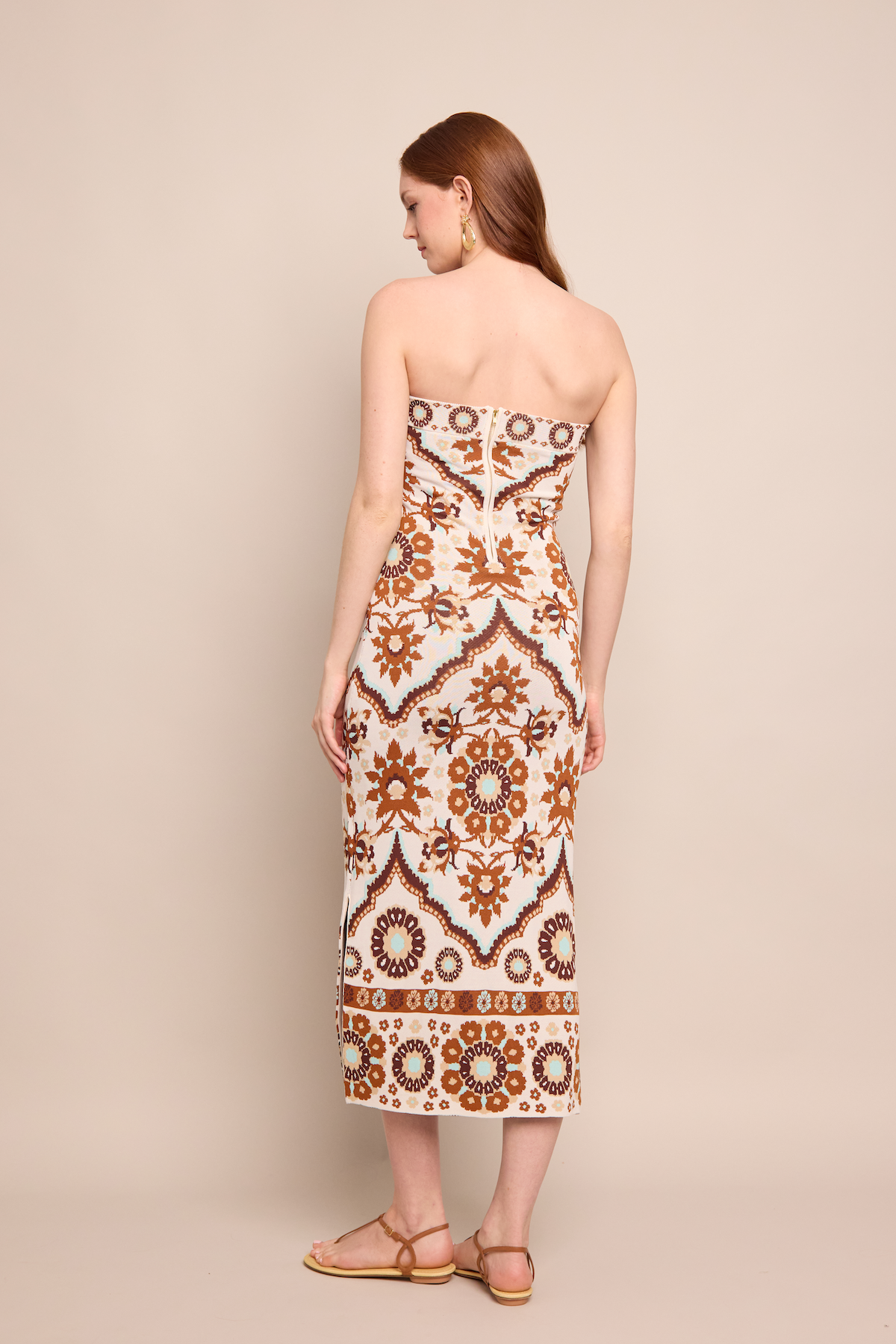 • Tube sheath dress with an elasticated band at the top and engineered jacquard pattern