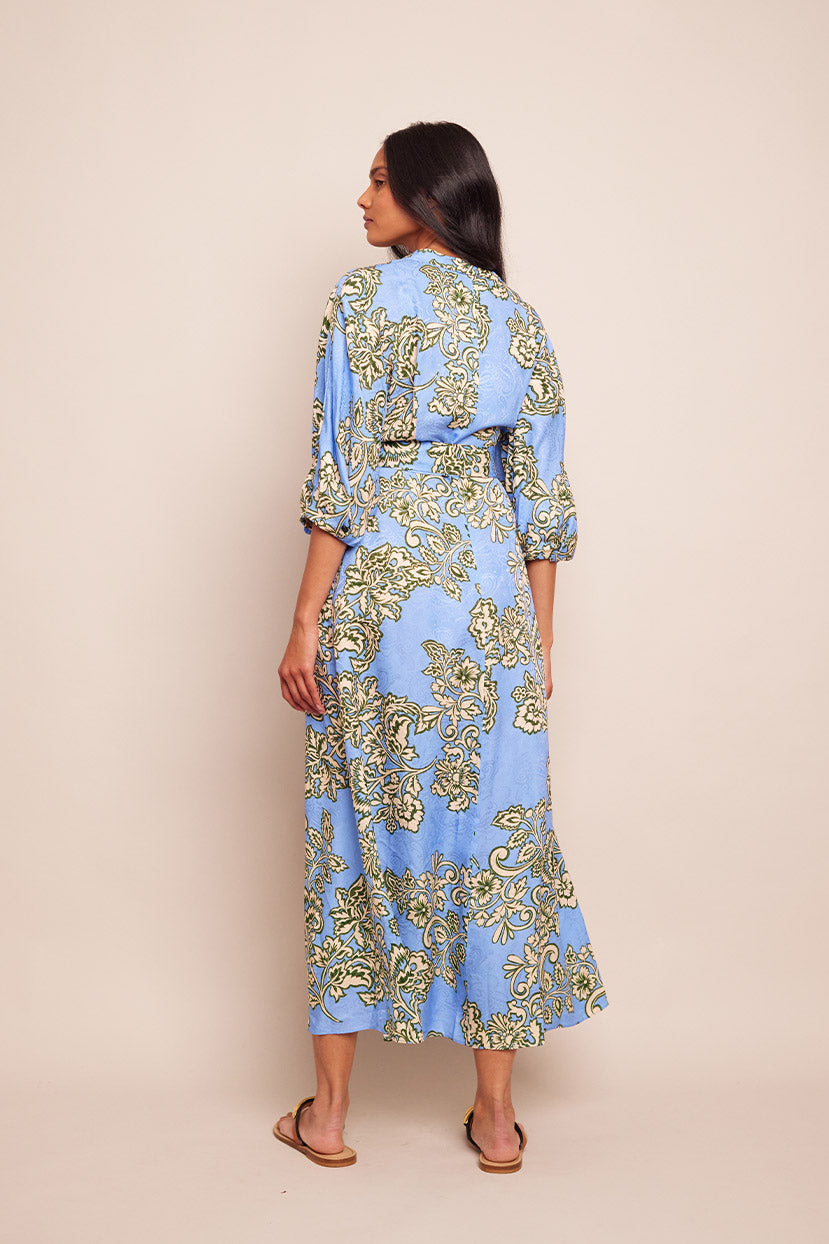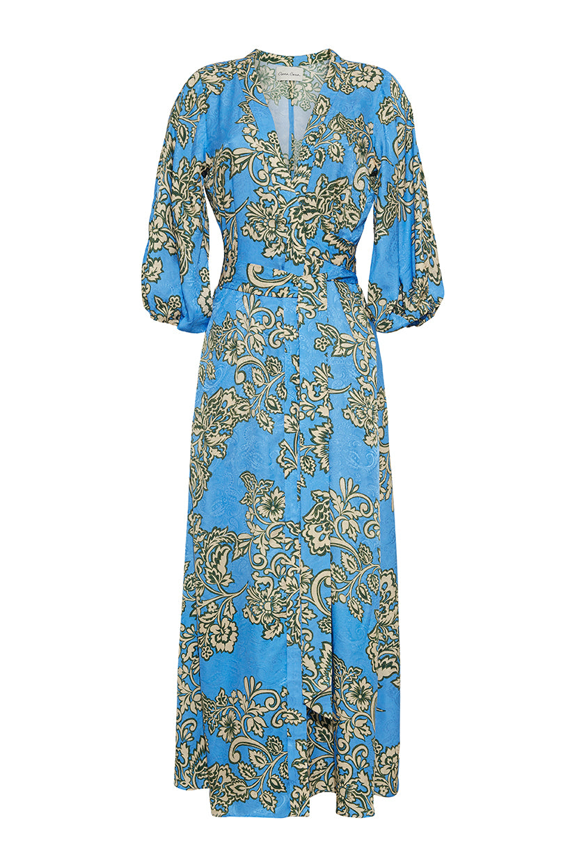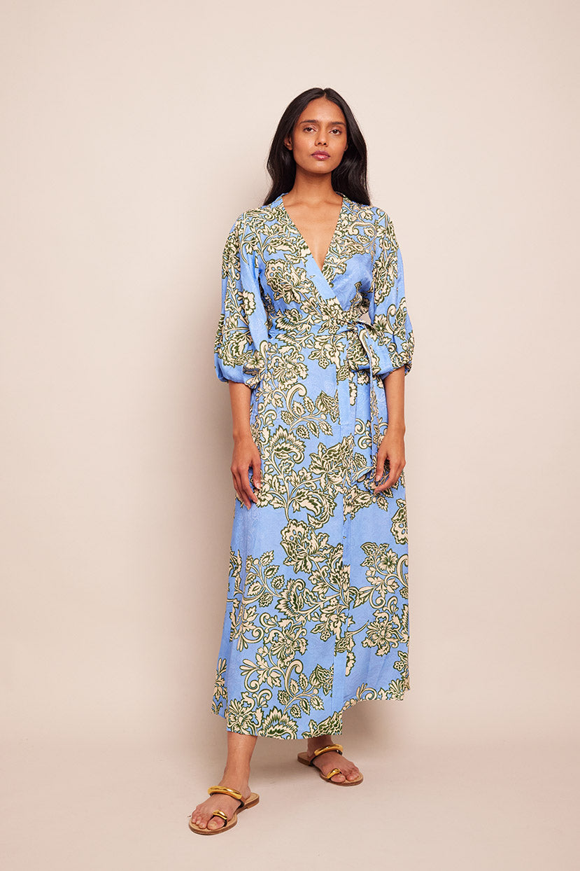 • True wrap dress with keyhole at sideseams for ties to loop through