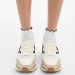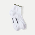 A statement sock to step up your activewear looks. Crafted from a stretch organic cotton blend utilizing recycled materials, this sport crew sock features a ruffled ankle with deep burgundy piping for an unexpected pop of color. Designed to stand out on or off the court, they pair effortlessly with a tennis skirt and sneakers or your go-to athleisure favorites. Elizabeth Reid is the namesake sock label of the luxury executive and industry veteran, offering elevated socks crafted from premium, ethically sourced materials. Each pair is thoughtfully designed for the woman on the move.