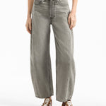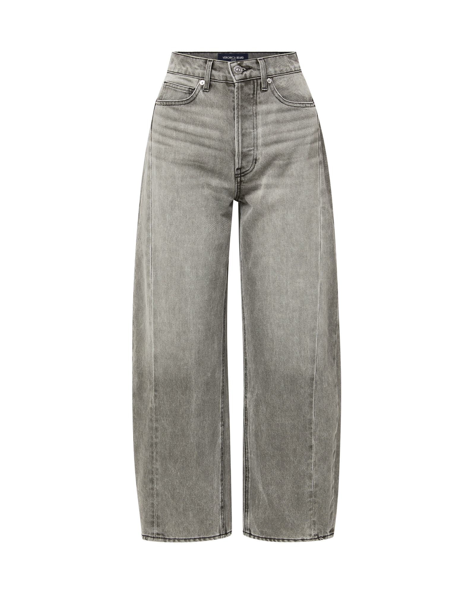 Meet the Ryder, our high-rise barrel jean. Made in LA from non-stretch denim in a faded gray wash, it features a relaxed silhouette that's cut wide from the hips and thighs. Cropped at the ankle, it pairs well with flats and heels alike. Style with a slim-fit tank or simple top to let the jeans take center stage.