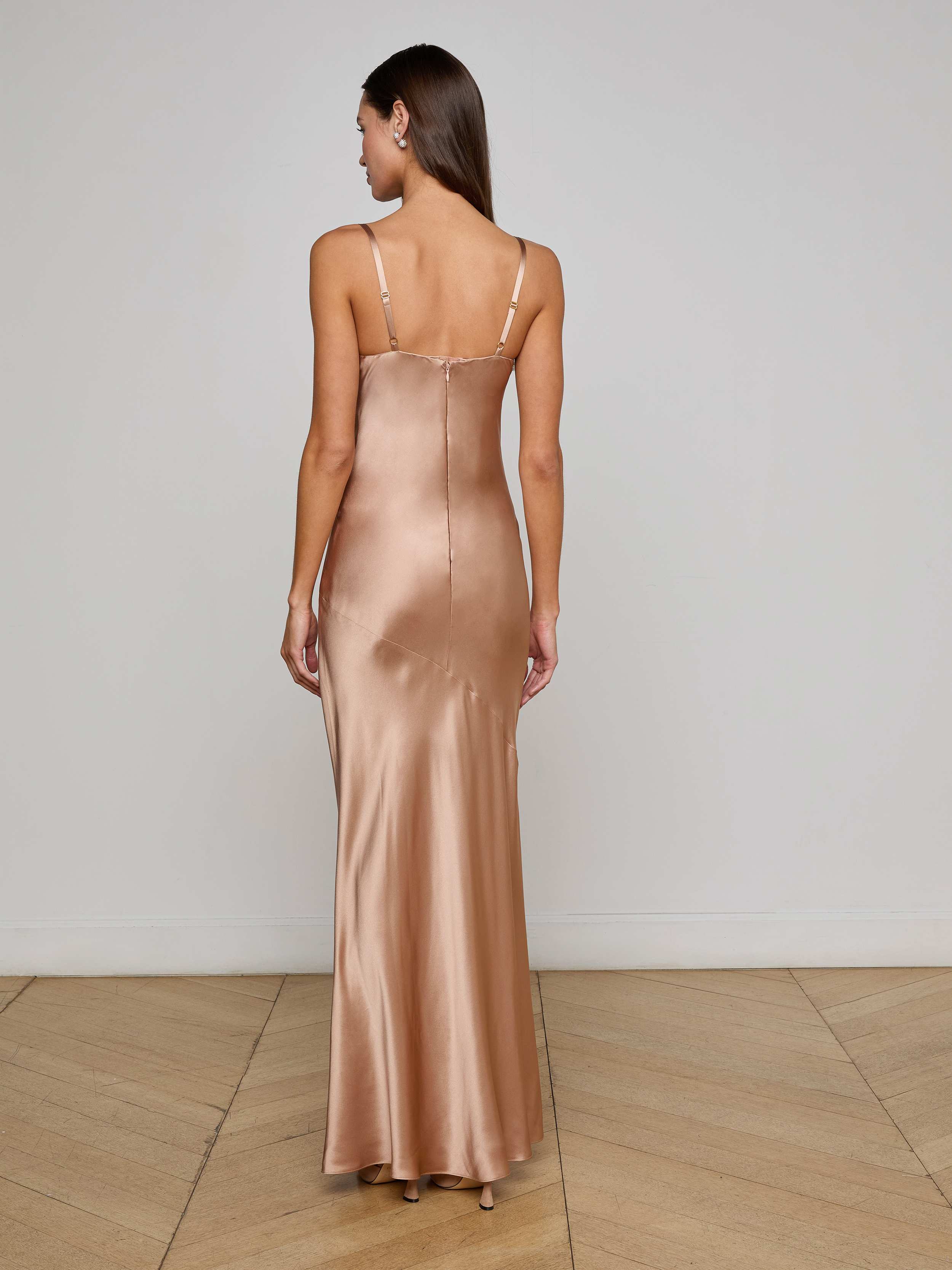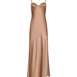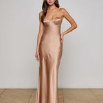 Our signature silk maxi dress has been updated with additional shape and support. Molded cups define the figure while offering coverage, eliminating the question, “What do I wear underneath?” The Sayla is your one-and-done evening gown.