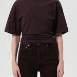 A fresh take on the classic tee. The Shari is cut from lightweight cotton jersey with exaggerated short sleeves and a slightly cropped fit.