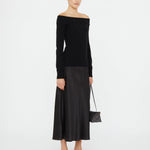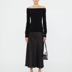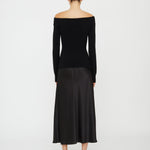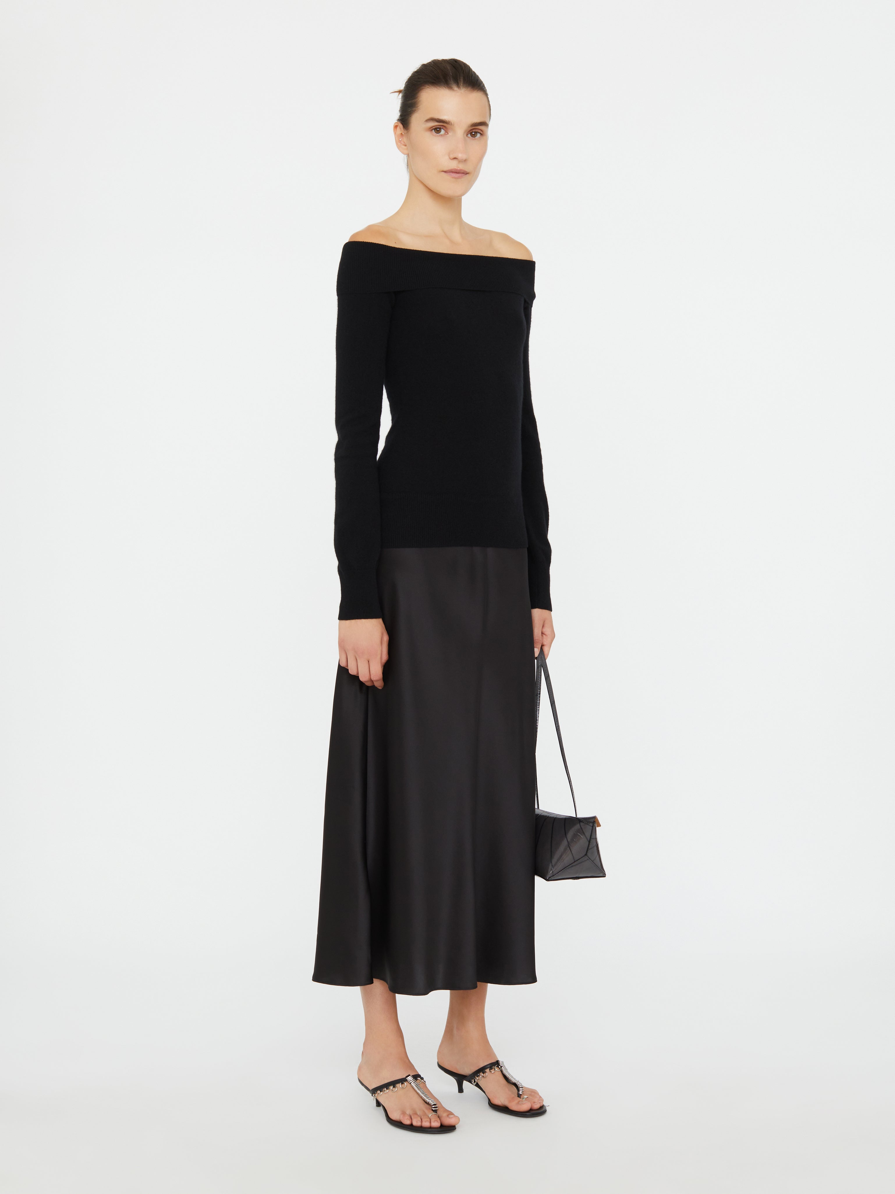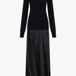 A knitted maxi dress that combines an ultrasoft cashmere and merino blend, with a skirt of premium silk.