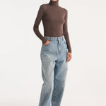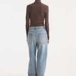 Our classic denim made from pure cotton in a classic denim blue tone. With a low-waist fit, elongating wide leg and a branded metal button.